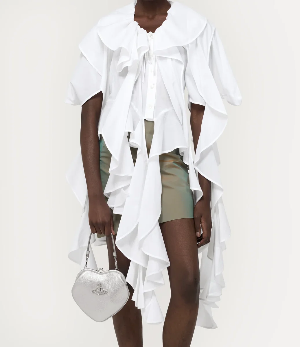 Die Herzform ist zu einem Markenzeichen der Marke geworden und taucht in vielen Kollektionen im Laufe der Geschichte des Hauses auf. Die Belle Heart Frame Geldbörse aus PU-Leder präsentiert sich mit einer genarbten Silhouette und ist auf der Vorderseite mit dem charakteristischen „Line Orb” des Hauses verziert – ein Symbol für die Verbindung von Vergangenheit und Zukunft.