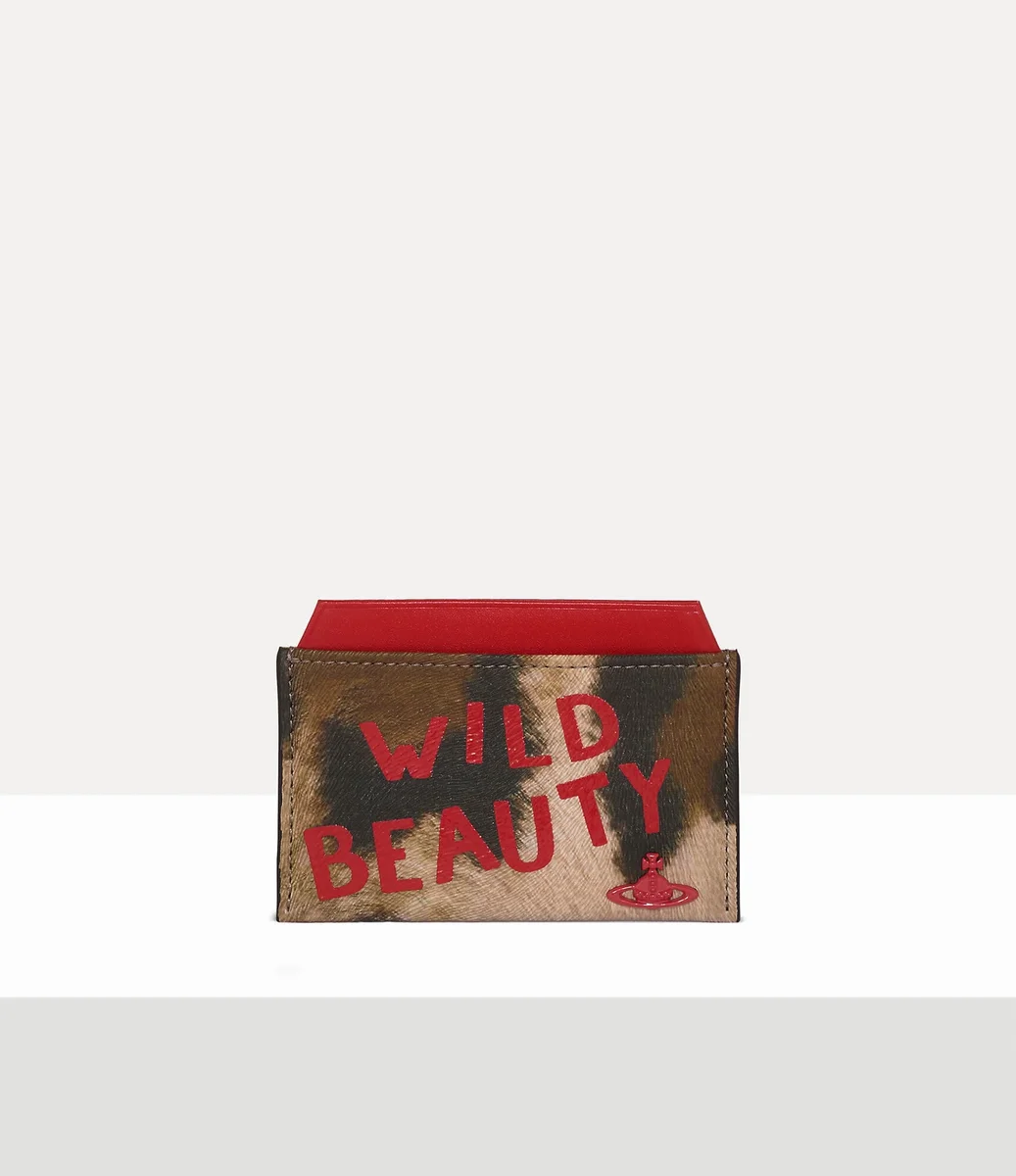 Unser flacher Kartenhalter ist mit einem auffälligen Leopardenmuster verziert, das an die charakteristische Gold Label-Kollektion „Wild Beauty” des Hauses aus dem Herbst/Winter 2001 erinnert. Das Modell ist mit einem auffälligen roten Schriftzug auf der Vorderseite versehen und wird durch das charakteristische Kugelmotiv im Flachrelief akzentuiert.