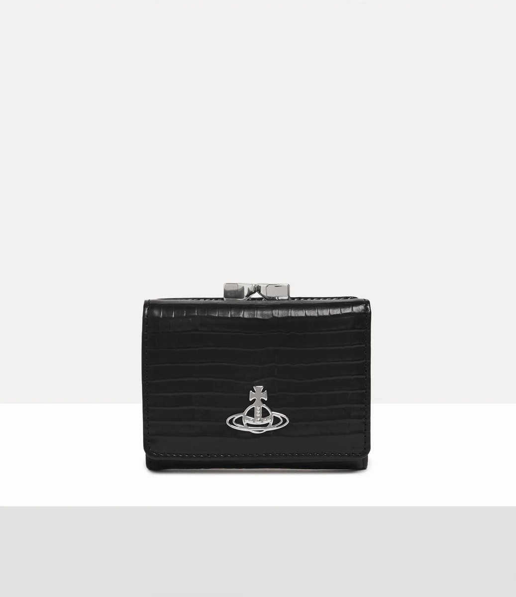 Die kleine Frame-Geldbörse von Vivienne Westwood ist aus Leder gefertigt und mit dem Mini-Krokodil-Effekt dieser Saison geprägt.