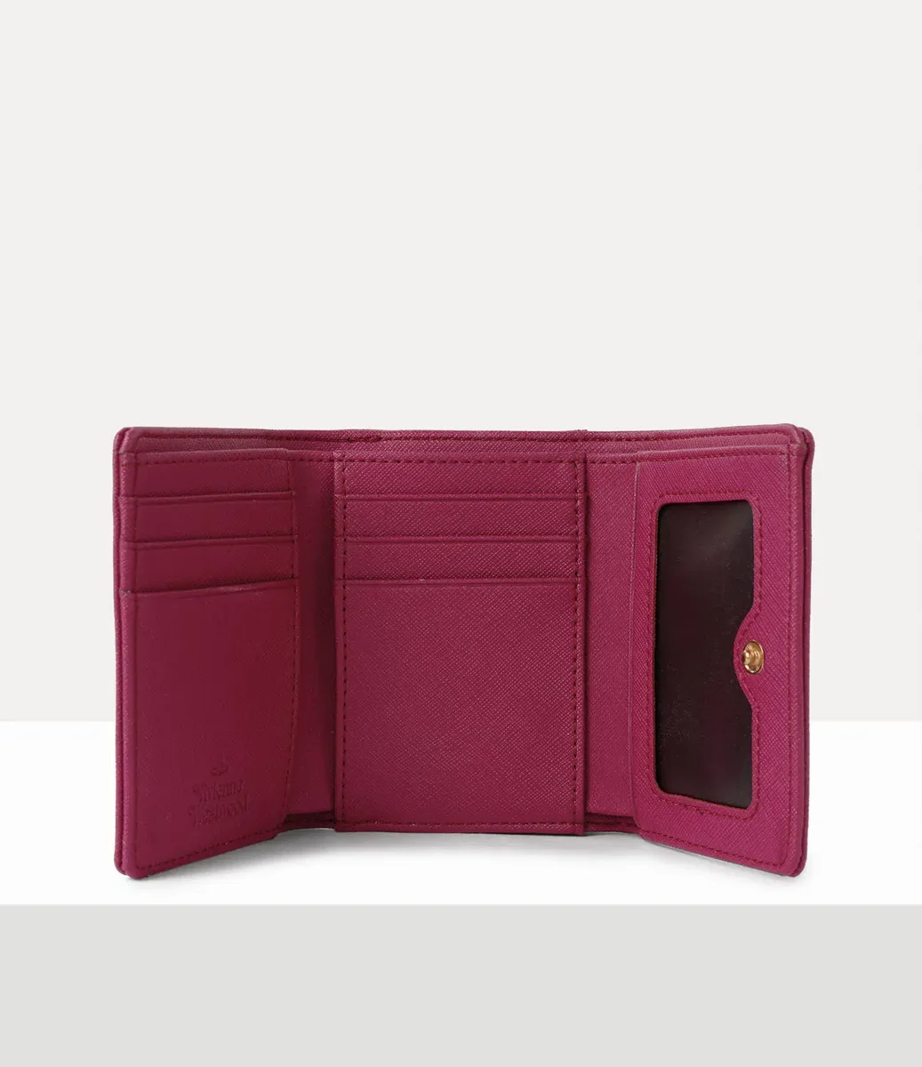 Unsere kleine Geldbörse im Rahmenformat hat ein klassisches PU-Lederprofil und ist mit einem Saffiano-Prägedesign versehen. Mit einem goldfarbenen Reliefmotiv auf der Vorderseite erinnert das Stück an Viviennes Vision, Tradition in die Zukunft zu tragen.