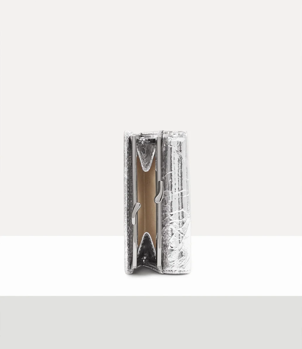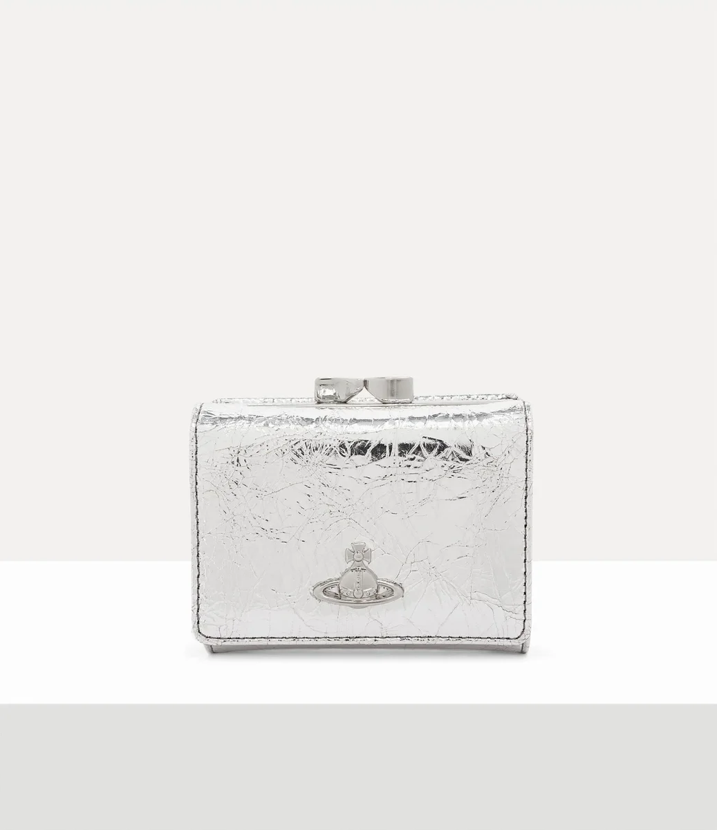 Unsere kleine Frame-Geldbörse präsentiert sich in dieser Saison mit einem metallischen Lederdesign mit Knittereffekt, das von den reichhaltigen Archiven des Hauses inspiriert ist. Die Geldbörse bietet ein übersichtliches Innenleben und ist auf der Vorderseite mit unserem Relief-Kugelmotiv verziert, das die Philosophie symbolisiert, die Vergangenheit in die Zukunft zu tragen.