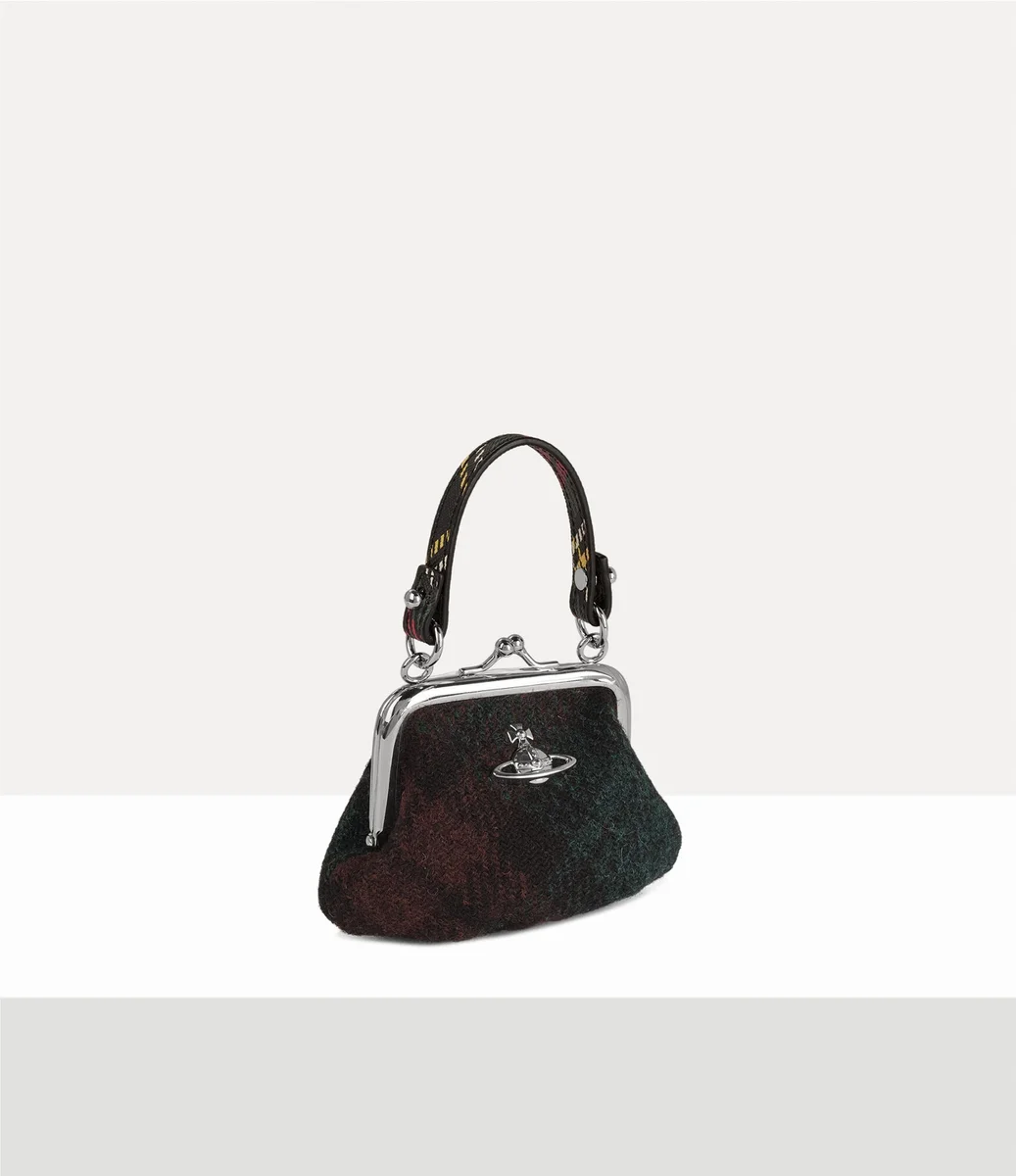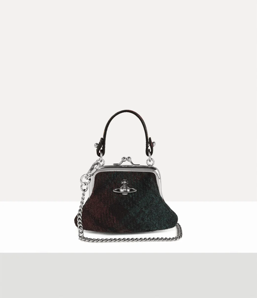 Die Mini Granny Frame Geldbörse ist eine kleinere Version der ikonischen Granny Frame Geldbörse des Hauses. Sie ist aus Harris Tweed gefertigt, der von Handwerkern auf den schottischen Äußeren Hebriden handgewebt wurde. Das Design zeichnet sich durch eine sanft strukturierte Silhouette und unser charakteristisches mehrfarbiges Kugelmotiv aus, das in der Tufting-Technik dieser Saison umgesetzt wurde.