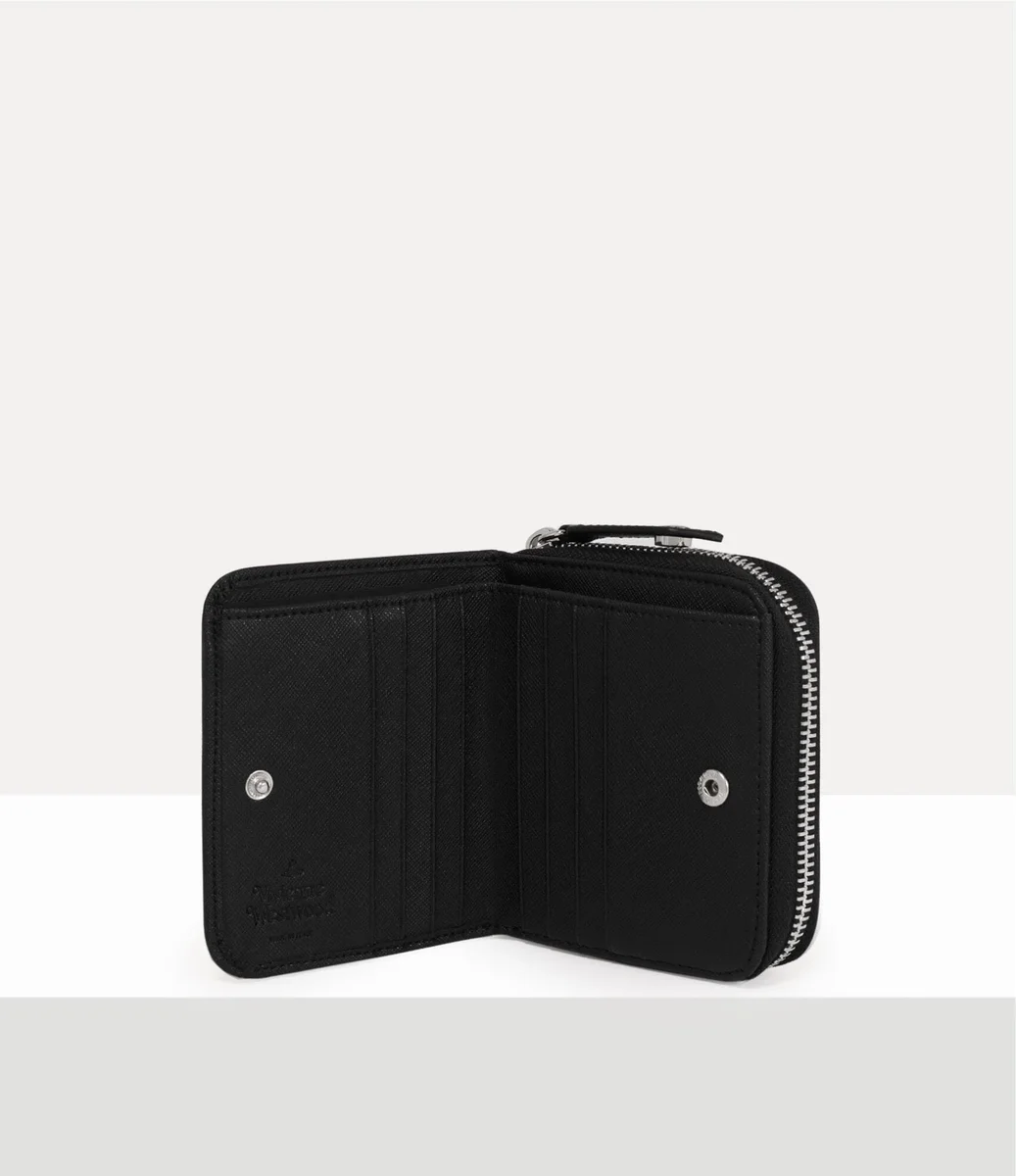 Unsere mittelgroße Geldbörse mit Reißverschluss aus PU-Leder mit Saffiano-Prägung verfügt über ein übersichtliches Innenleben mit integrierten Kartenfächern und einem speziellen Fach für Quittungen und Notizen. Das Modell hat eine abgerundete Silhouette und wird mit einem sicheren Reißverschluss geschlossen, der mit einem dreidimensionalen Orb auf der Vorderseite verziert ist.