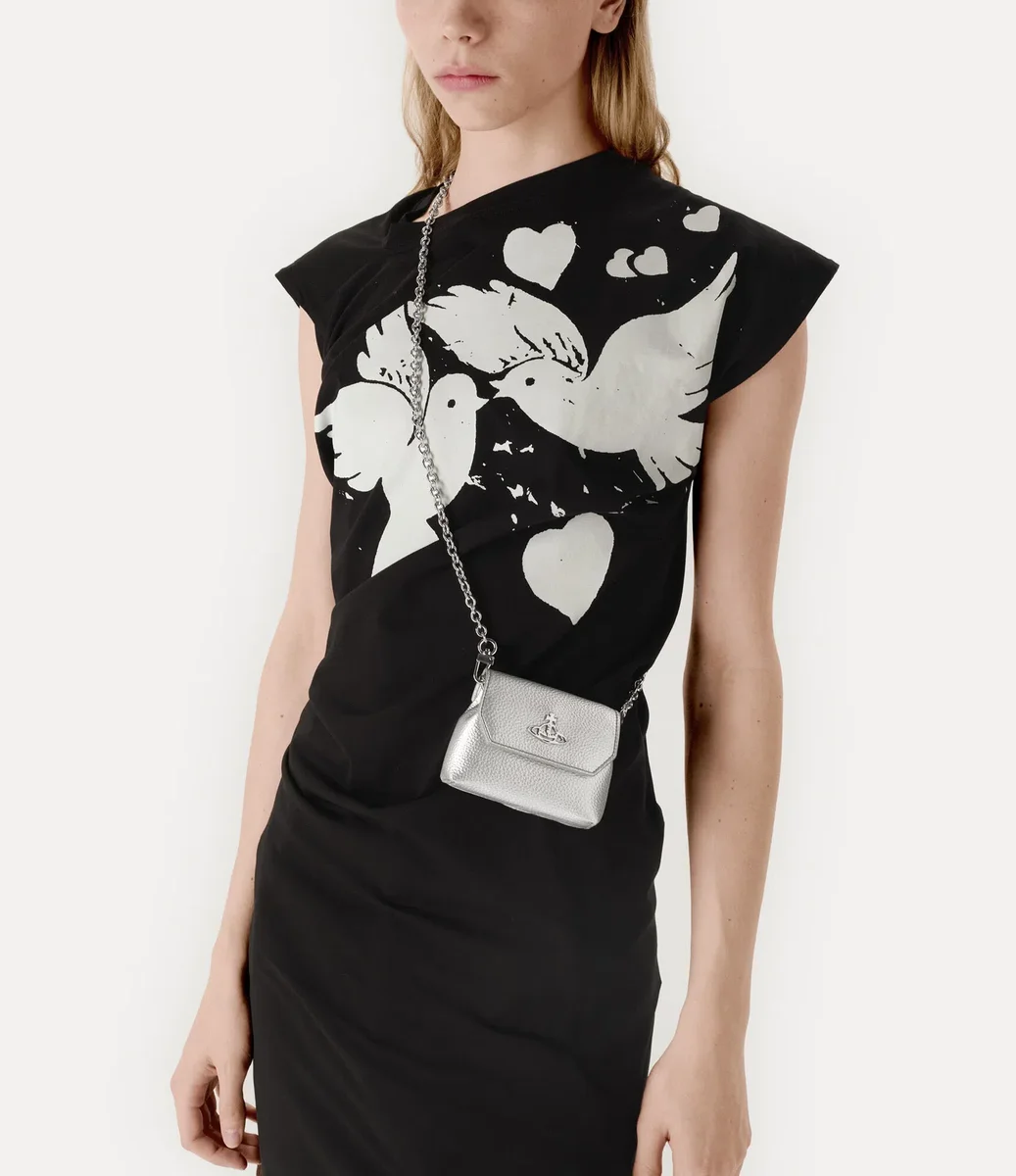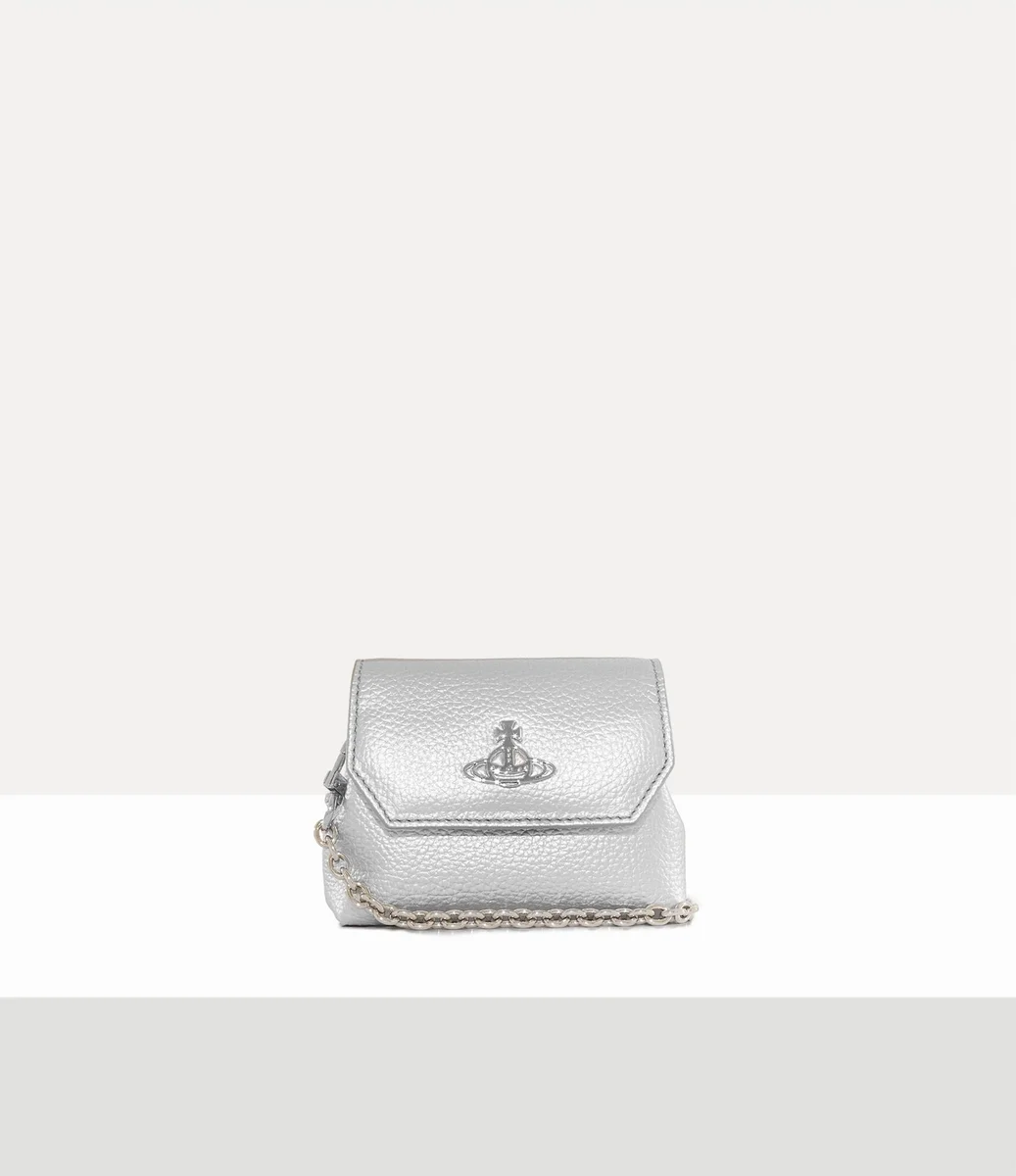 Die Nano Pouch ist aus PU-Leder gefertigt und verfügt über eine Prägung in Narbenoptik, die das Design ziert, sowie silberfarbene Metallbeschläge und einen abnehmbaren Kettenriemen. Das Stück ist mit unserem Orb-Motiv auf dem Magnetverschluss verziert, das für Tradition steht und von den himmlischen Ringen des Saturn umgeben ist, die die Zukunft symbolisieren.