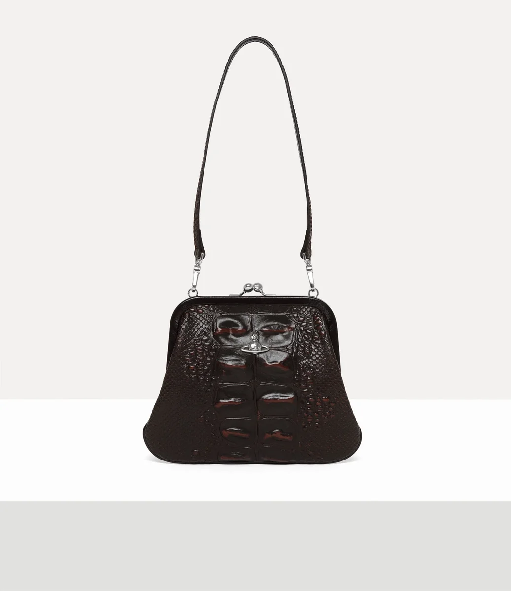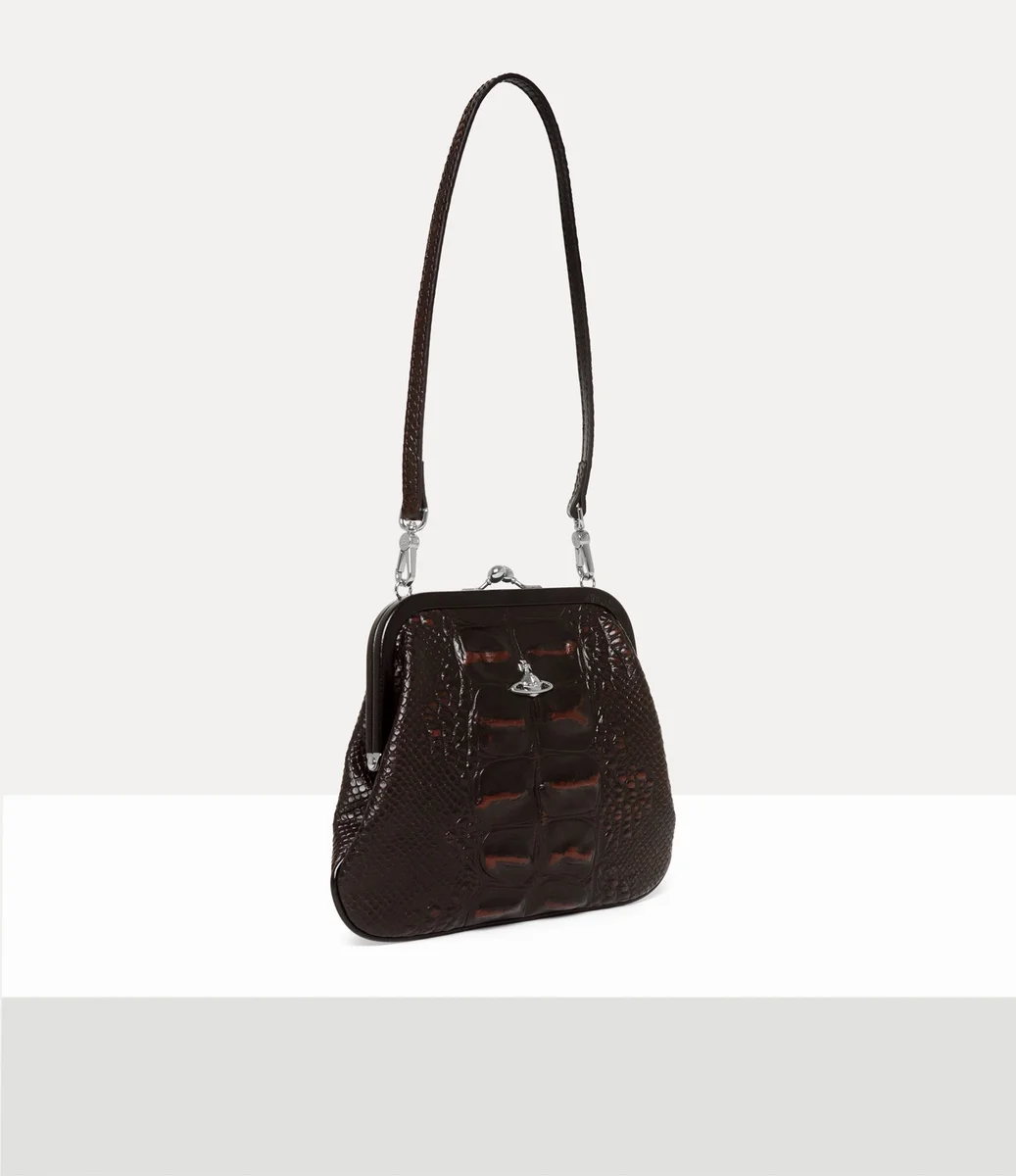 Unsere Vivienne Clutch aus Leder ist mit dem geprägten „Dinosaurier”-Motiv dieser Saison verziert, das an die strukturierte Haut prähistorischer Reptilien erinnert. Das Modell ist nach Vivienne benannt, die diesen Stil besonders schätzte, und mit unserem charakteristischen „Line Orb”-Motiv auf der Vorderseite verziert.