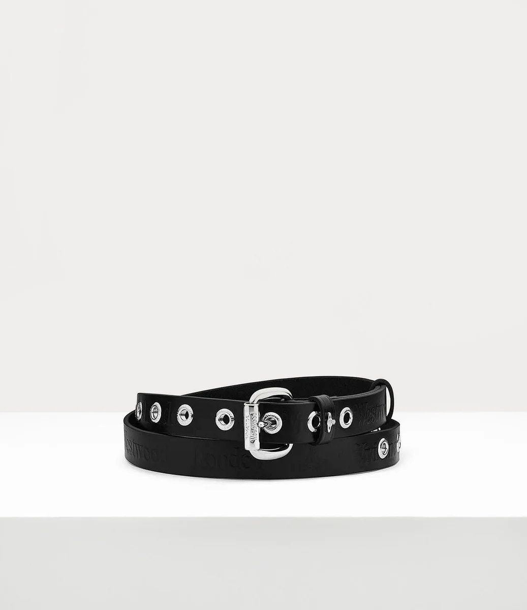 Unser Carolina-Gürtel zeichnet sich durch eine schmale Ledersilhouette mit polierten Metallösen aus. Das Stück ist mit dem charakteristischen Vivienne Westwood-Schriftzug graviert und wird durch ein Kugelmotiv auf der vorderen Schnalle ergänzt – ein Symbol für Viviennes Vision, Tradition in die Zukunft zu tragen.