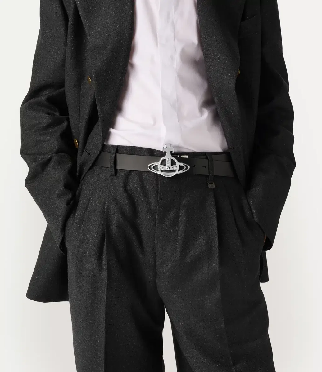 Unser Gürtel mit Line Orb-Schnalle ist mit einer polierten silberfarbenen Beschichtung versehen und mit unserem „Line Orb”-Motiv an der Schnalle verziert, das für Tradition steht und von den himmlischen Ringen des Saturn umgeben ist, die die Zukunft symbolisieren. Das Design bietet einen glatten Lederriemen mit Lochdetails.