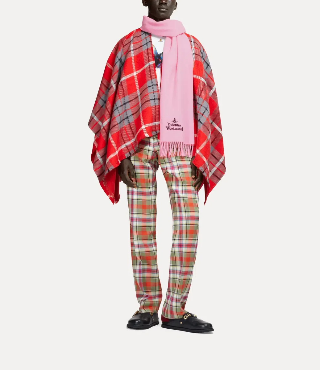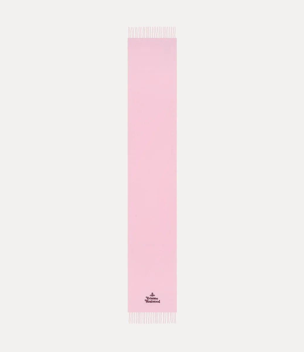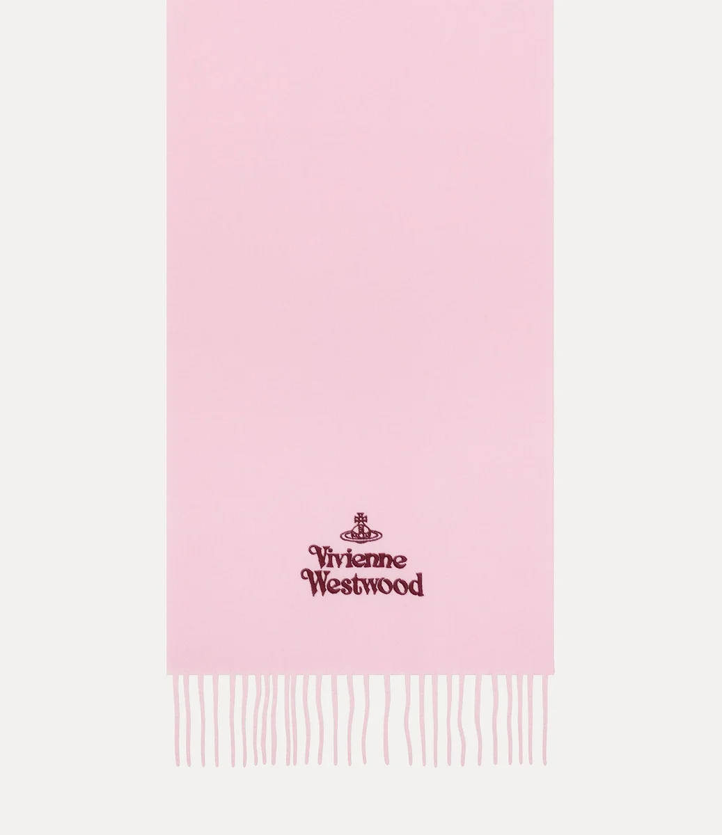 Der bestickte Schal von Vivienne Westwood hat eine weiche Wollsilhouette und ist am unteren Rand mit dem Schriftzugmotiv des Hauses versehen.