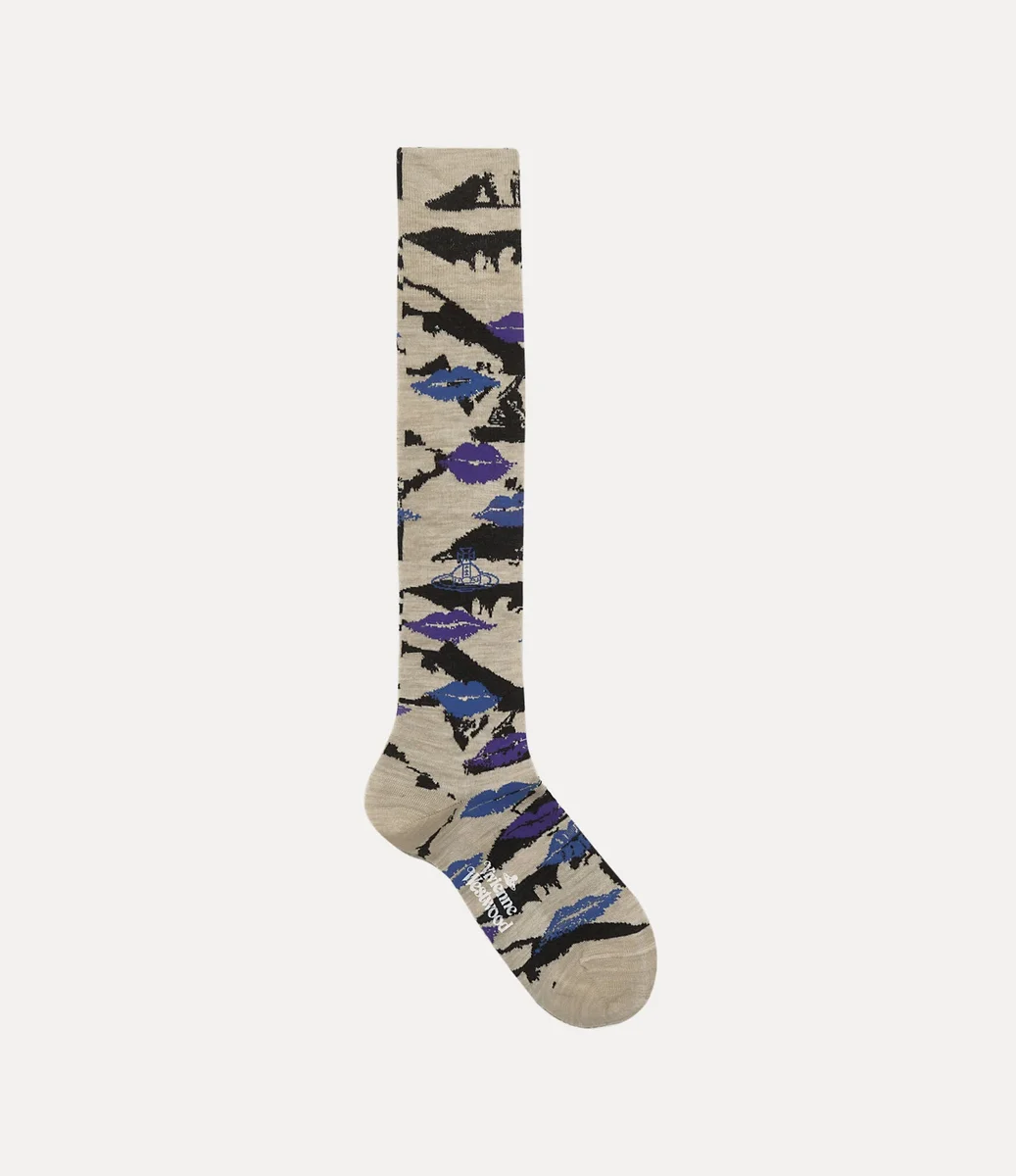 In dieser Saison ziert das „Kisses”-Motiv, inspiriert von der Verpackung des Boudoir-Parfüms des Hauses, unsere knielangen hohen Socken. Das Paar aus einer weichen Baumwollmischung ist mit dem charakteristischen Orb-Motiv verziert, das die Philosophie der Marke symbolisiert, die Vergangenheit in die Zukunft zu tragen.