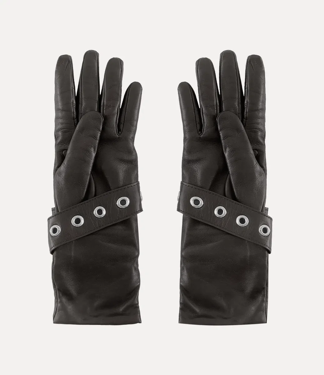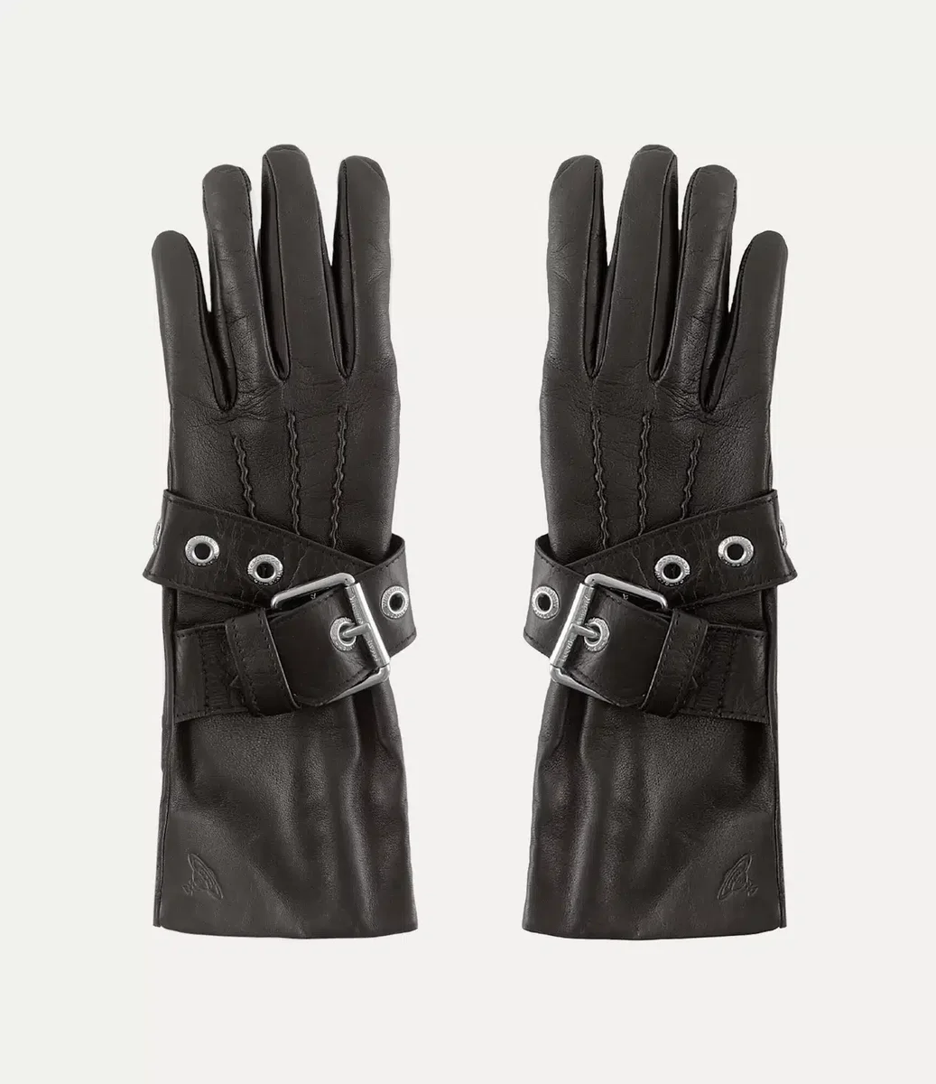 Die Handschuhe mit Gürtelschnalle von Vivienne Westwood sind aus weichem, glattem Leder gefertigt und verfügen über eine verlängerte Manschettenlänge.