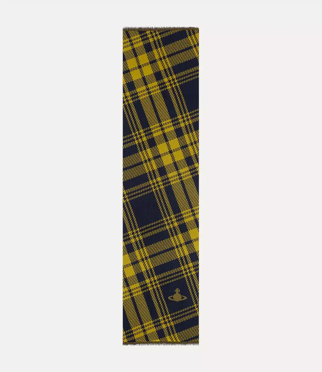 Der Schal von Vivienne Westwood ist aus weicher Wolle gefertigt und mit einem Tartan-Motiv gewebt, das von traditionellen schottischen Highland-Insignien inspiriert ist.