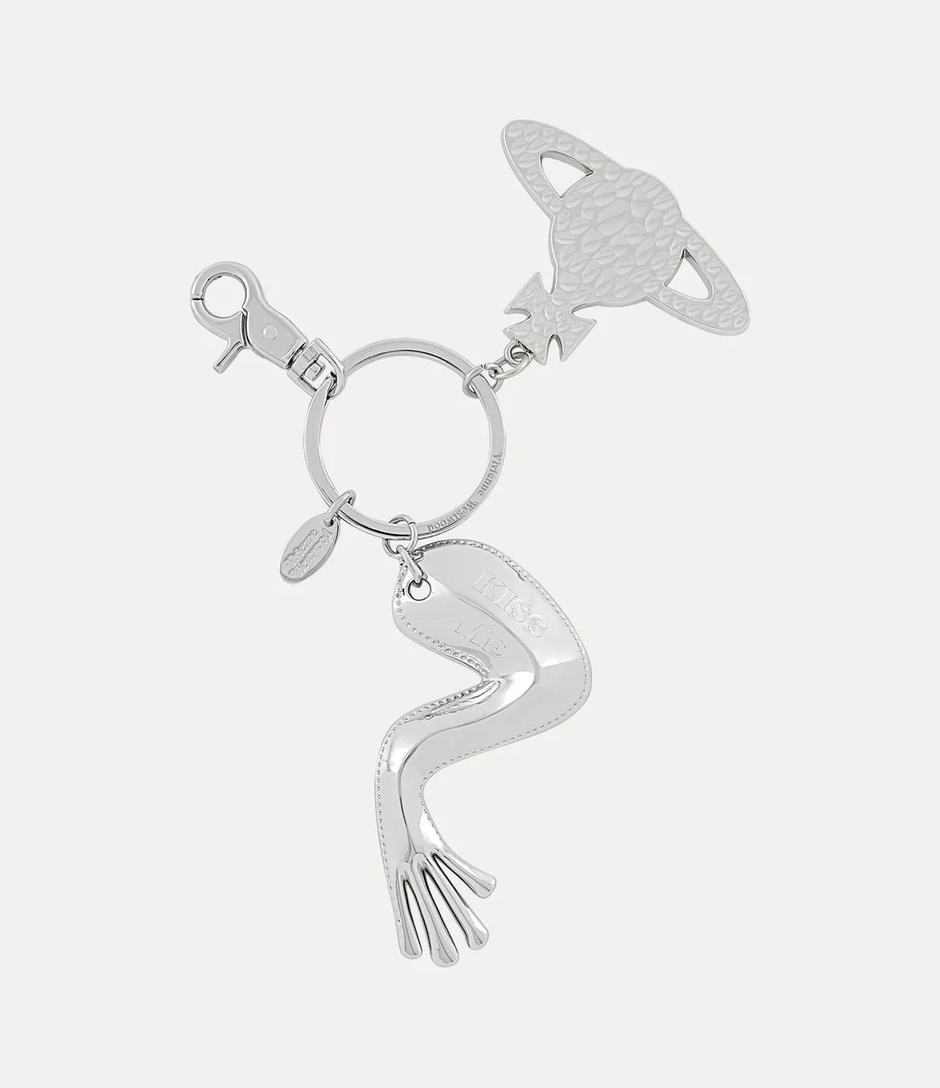 Unser Schlüsselanhänger „Frog Leg Charm” aus poliertem Silber ist eine verspielte Anspielung auf das Märchen „Der Froschkönig”. Inspiriert von antiken Repoussé-Verzierungen ist die kunstvolle Beinsilhouette mit dem Slogan „Kiss me” graviert und mit dem für das Haus typischen „gehämmerten” Kugelmotiv verziert.