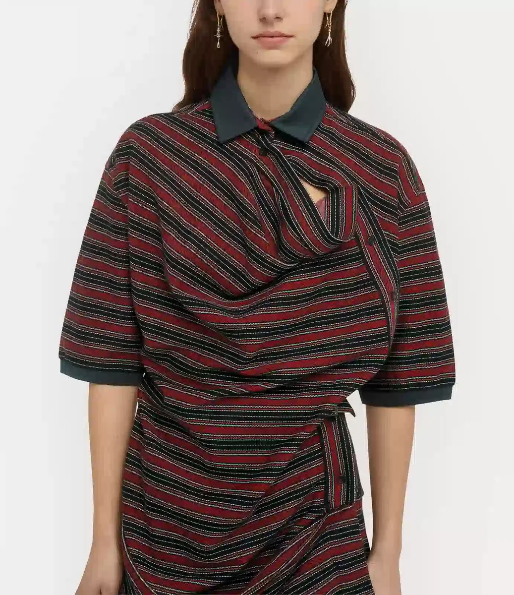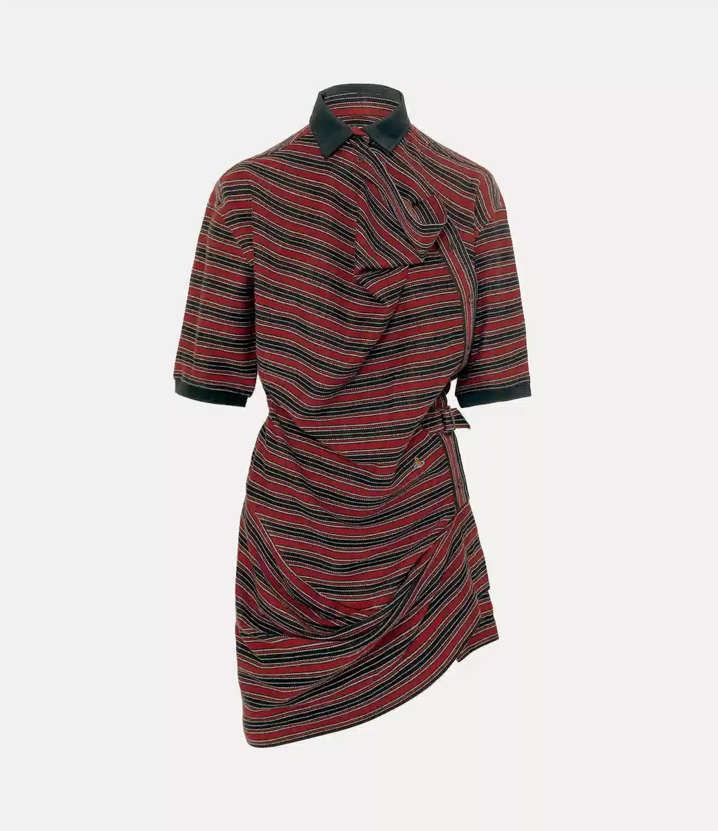 Das Ming Polo Dress bietet unsere charakteristische „Ming”-Schnitttechnik, die erstmals in der Andreas Kronthaler-Kollektion vorgestellt wurde, bei der die Form des Kleidungsstücks kunstvoll verzerrt wird, um eine fast surreale Silhouette zu schaffen. Das Kleidungsstück erhält das von Archiven inspirierte Streifenmotiv dieser Saison mit einer versetzten Knopfleiste und Drapierungen am Ausschnitt, die in einen asymmetrischen Saum übergehen.