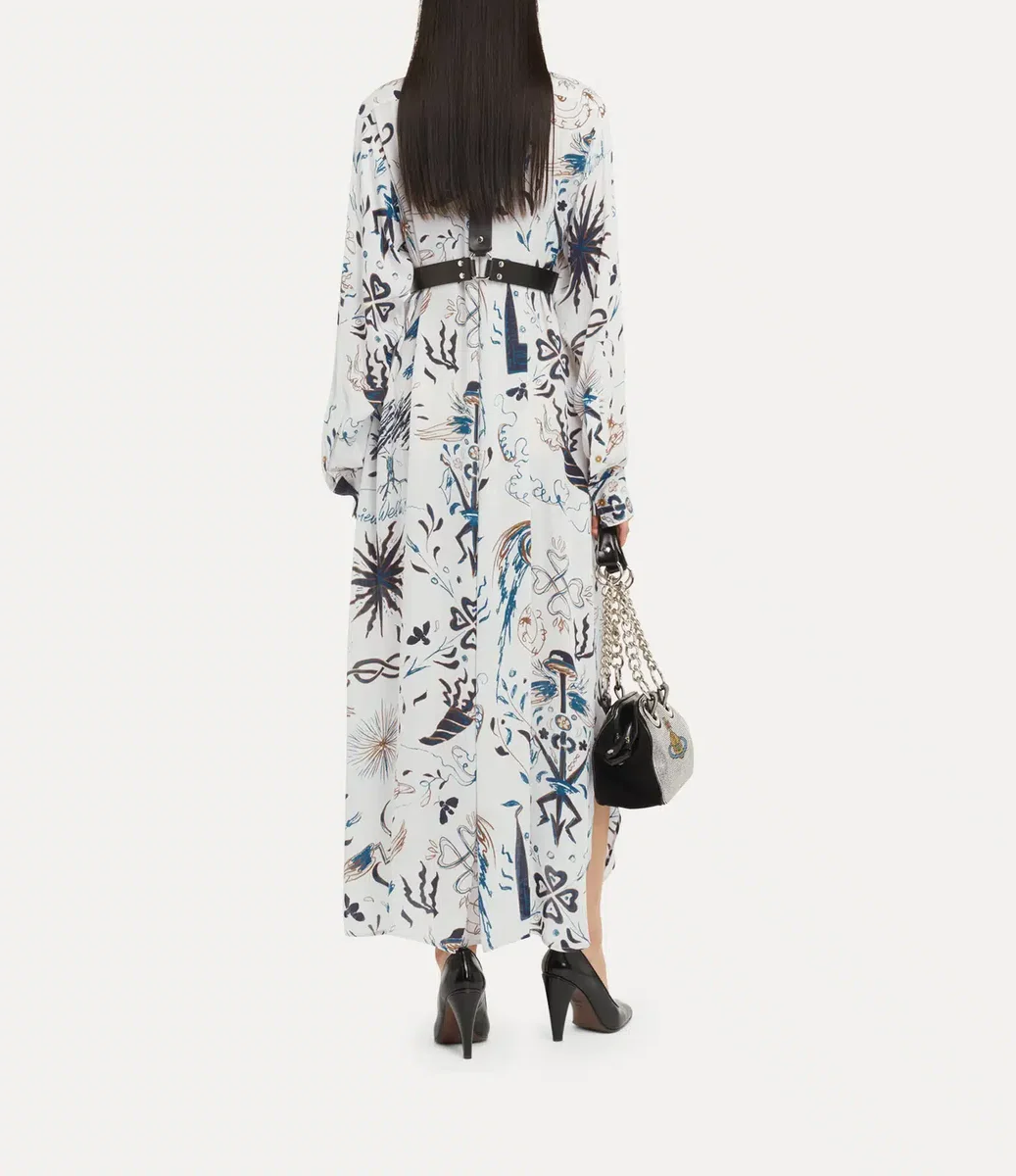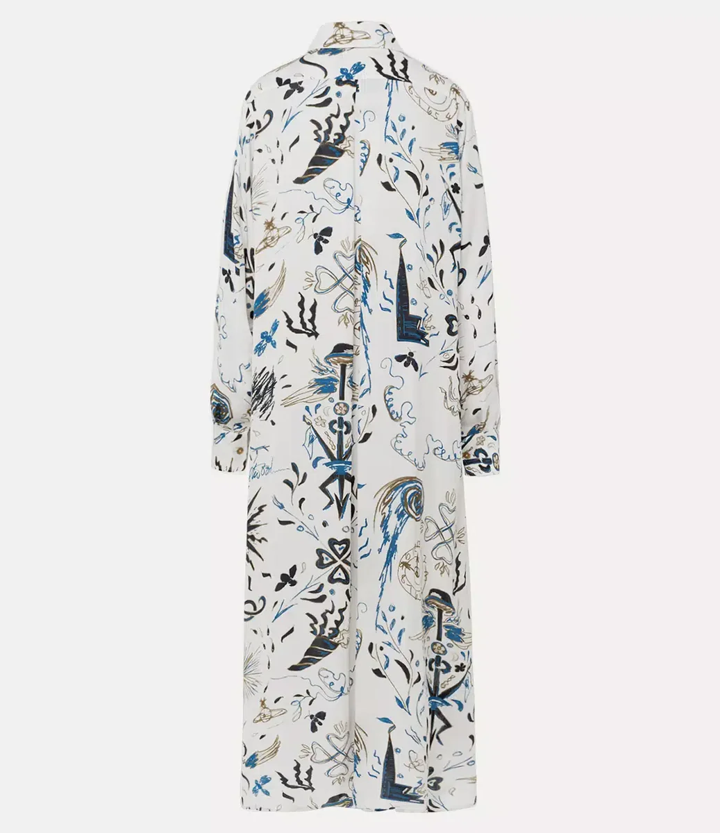 Inspiriert von „Der lachende Kavalier“ von Frans Hals, das derzeit in der Wallace Collection zu sehen ist, ist das VW-Hemdkleid mit einem abstrakten Grafikdesign bedruckt, das die charakteristische Ikonografie des Hauses aufgreift. Der Druck mit Motiven einer spiralförmigen Uhr und Sternenexplosionen erschien erstmals in der Gold Label Frühjahr/Sommer-Kollektion 2010 „Get A Life“.