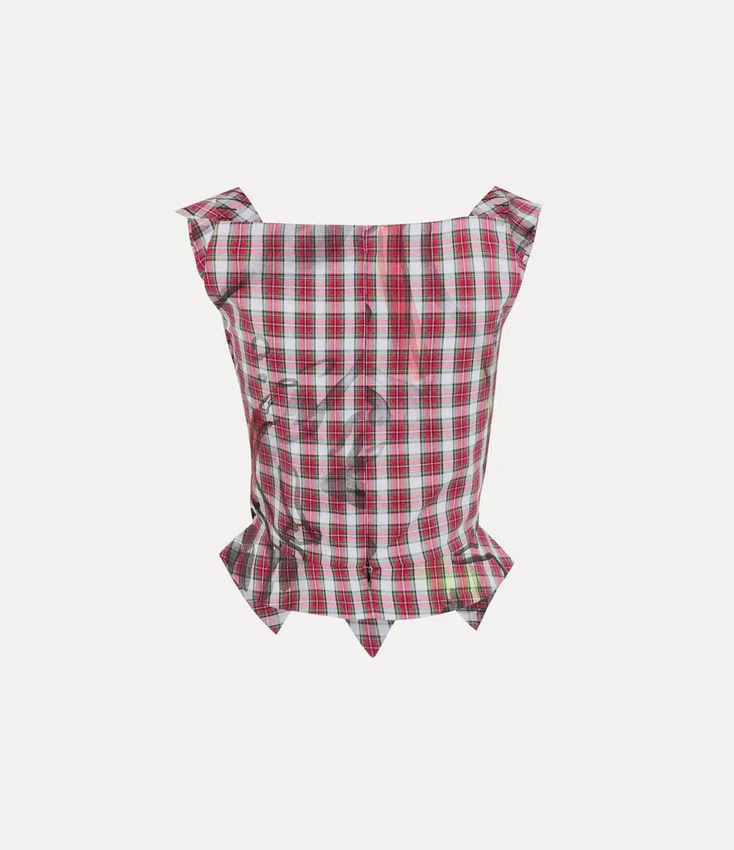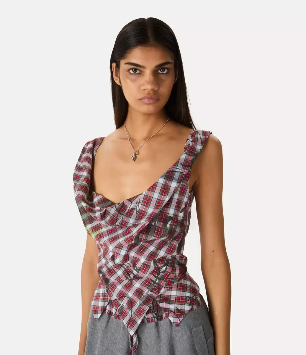 In dieser Saison ist unser Sunday Top mit einem aufgedruckten roten Tartan-Karomuster versehen, das an eine klassische handgewebte Ästhetik erinnert. Überlagert mit handgezeichneten Illustrationen von Dominic Myatt und akzentuiert mit lebhaften Graffiti-Sprühen, ist das Design eine Hommage an den „DIY”-Punk-Spirit des Hauses.