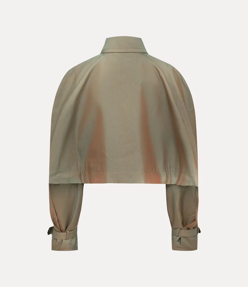 Unser Cut Off Graziano Trenchcoat wurde in einem zweifarbigen Finish neu interpretiert und mit einer weichen grün-braunen Waschung versehen, die einen Used-Look und einen schillernden Effekt erzeugt. Das Design mit seiner voluminösen Silhouette ist vom historischen „Cloud”-Schnittsystem inspiriert, das erstmals in der Herbst/Winter-Kollektion 2022 von Andreas Kronthaler für Vivienne Westwood vorgestellt wurde.