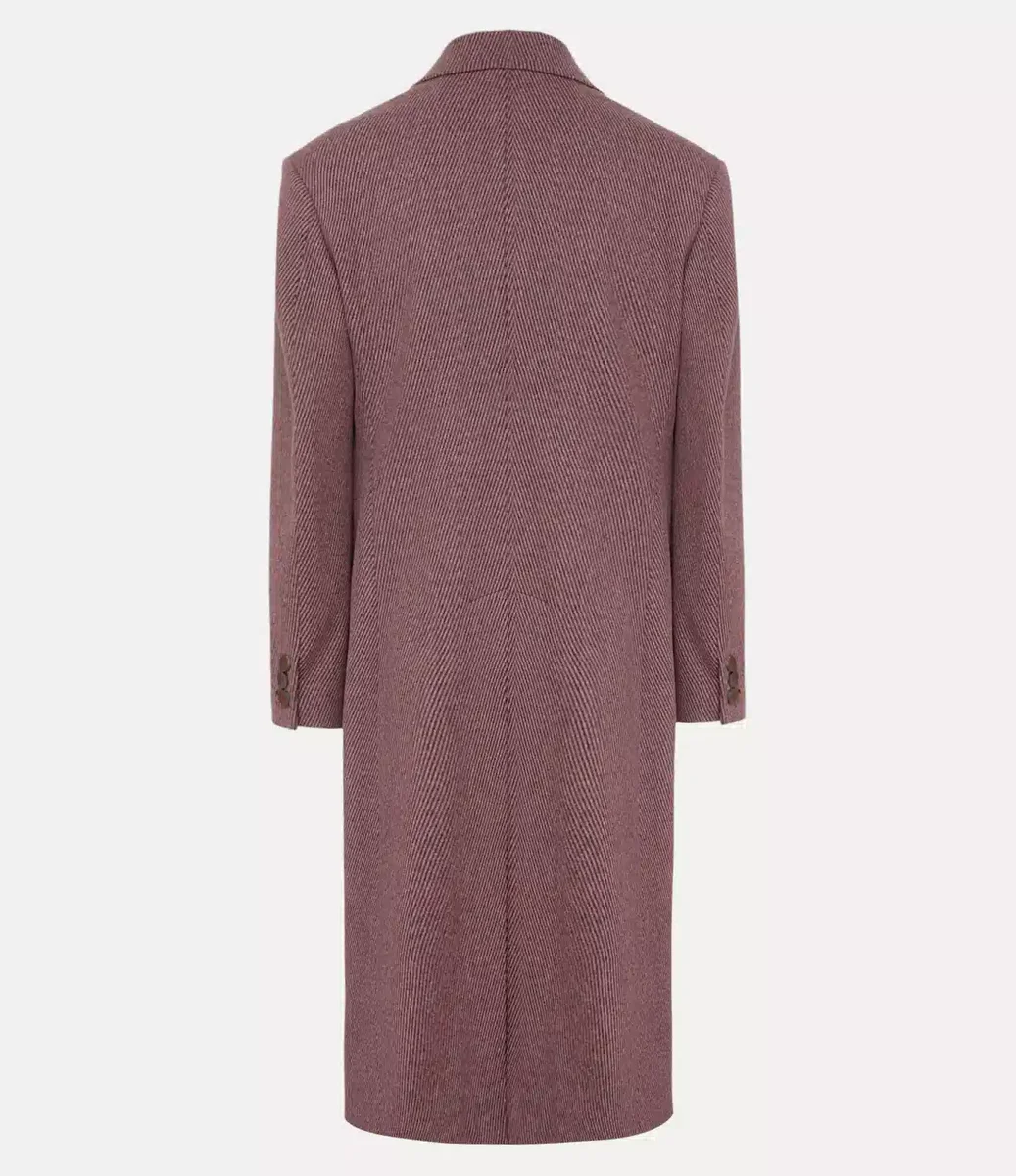 Unser Winston-Mantel zeichnet sich durch ein strukturiertes Wollprofil mit diagonalem Köpergewebe in einem gedeckten Burgunderton aus. Das Modell verfügt über eine doppelreihige Vorderseite mit breitem Revers und sicheren Knopfverschlüssen.