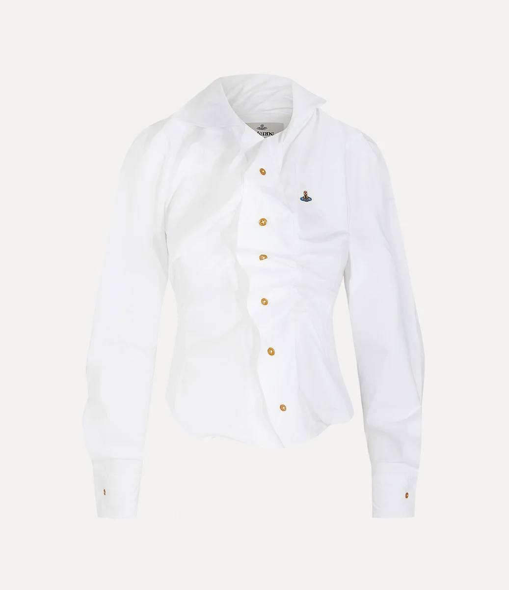 Unser Drunken-Hemd greift Elemente des „Alcoholic”-Schnittsystems auf, das erstmals in der Herbst/Winter-Kollektion 1983/84 „Witches” vorgestellt wurde. Dieses klassische Hemd verfügt über eine versetzte Knopfleiste mit asymmetrischem Saum und Knopfverschluss.