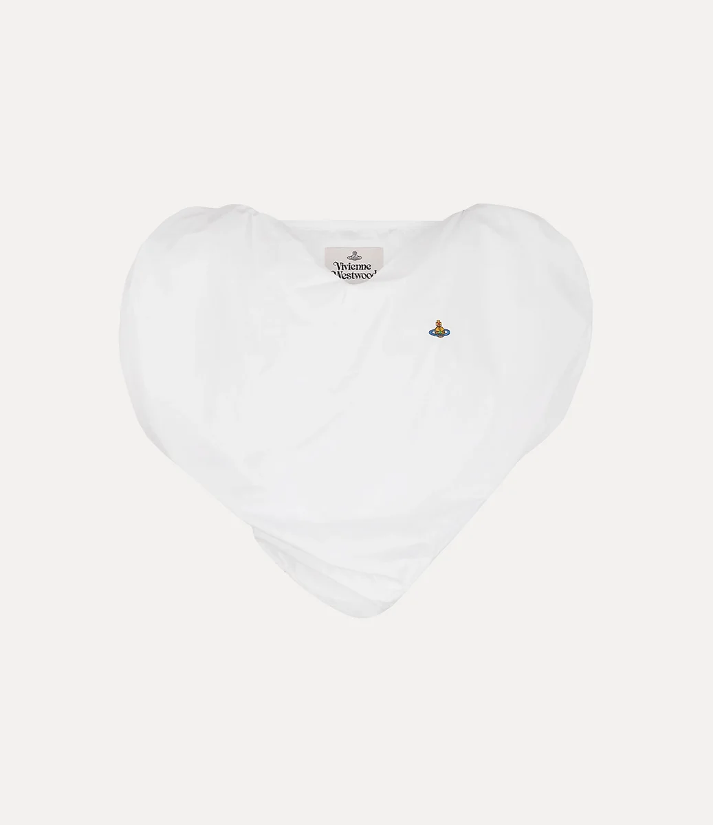 Das Vivienne Westwood Heart Top aus weicher Baumwolle verfügt über eine gestickte Kugel auf der linken Seite des Designs.