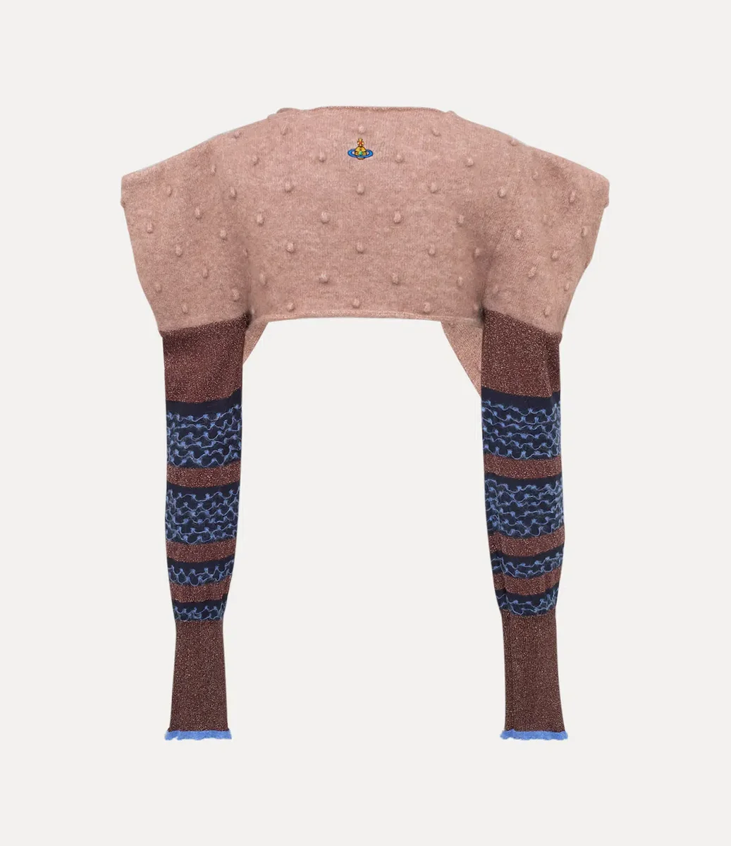 Unser Rubina Bolero ist aus einer weichen Alpaka-Wollmischung gefertigt und zeichnet sich durch eine verspielte Noppenstrickstruktur im Oberkörperbereich aus. Das Modell mit weitem U-Boot-Ausschnitt und skulpturalen Schultern wird durch mehrstrukturige, eng anliegende Ärmel abgerundet, die einen Kontrast zur verkürzten Silhouette bilden.p>