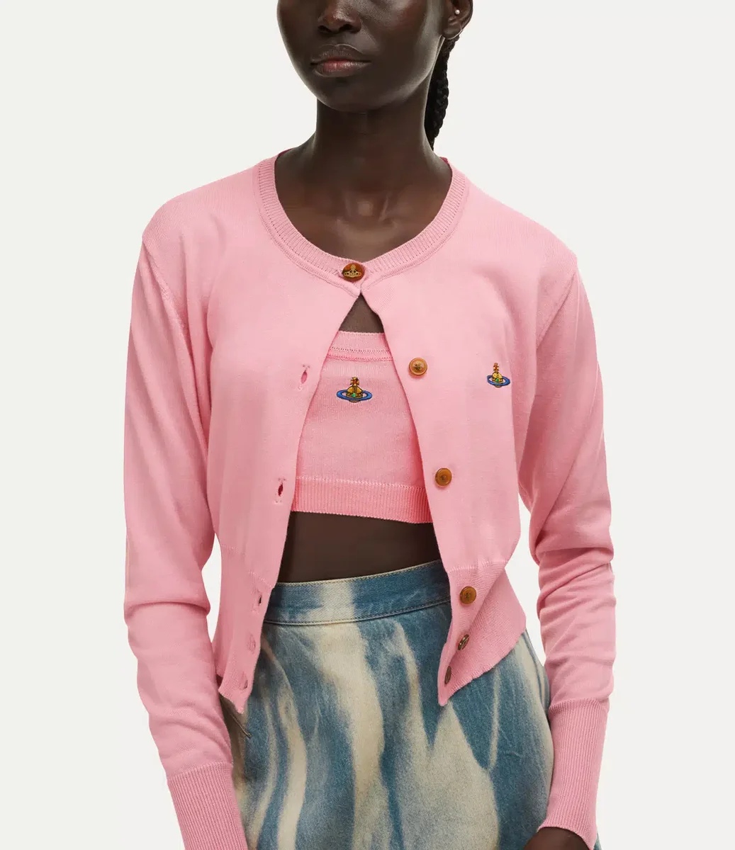 Unser Bea Cropped Cardigan wurde in dieser Saison neu interpretiert und ist aus einer weichen Baumwoll-Kaschmir-Mischung gefertigt, verziert mit einer mehrfarbigen Kugelstickerei auf der linken Brustseite. Das Modell verfügt über einen großen ovalen Knopfverschluss am Ausschnitt, der mit dem klassischen „Line Orb”-Motiv graviert ist.