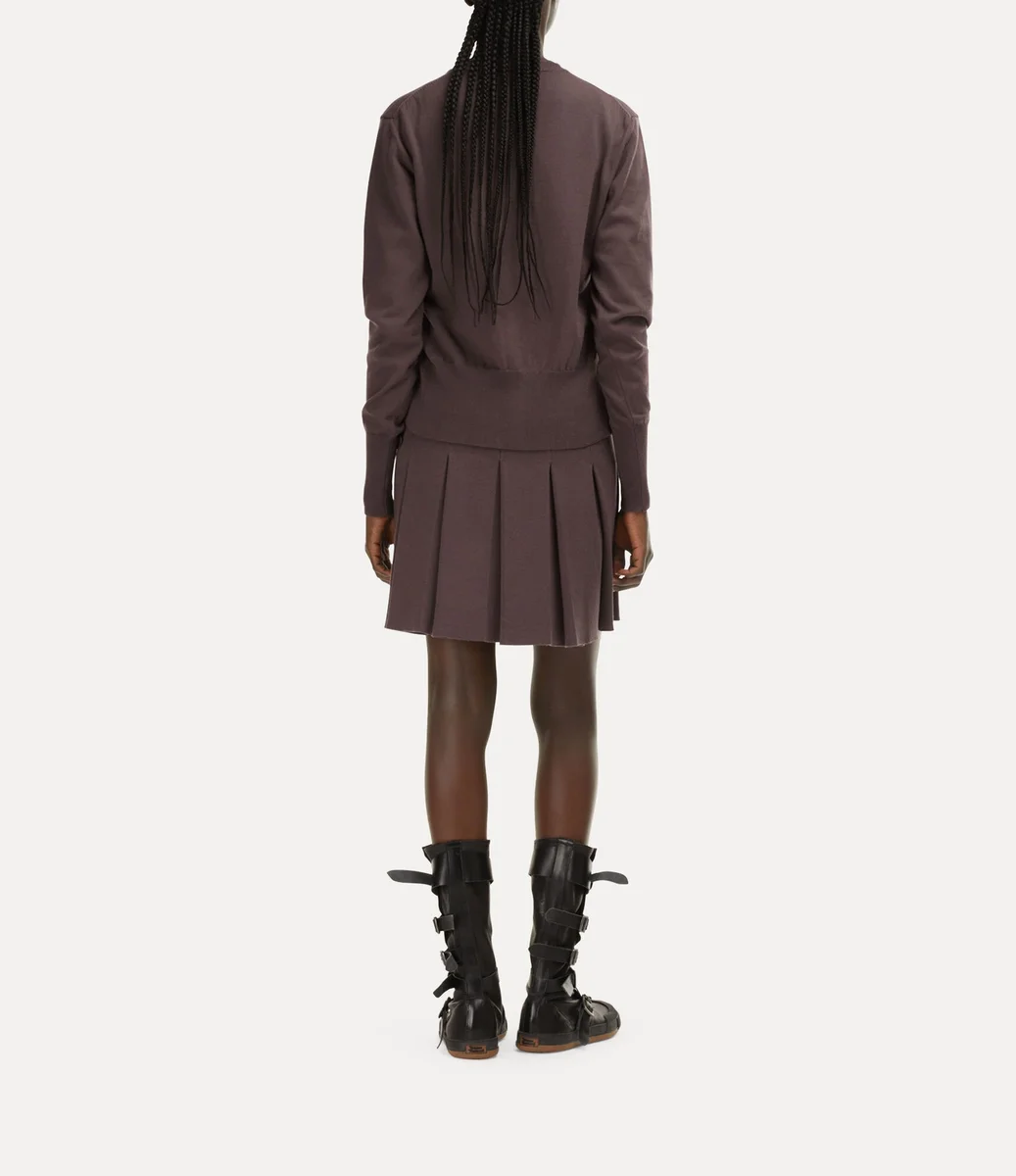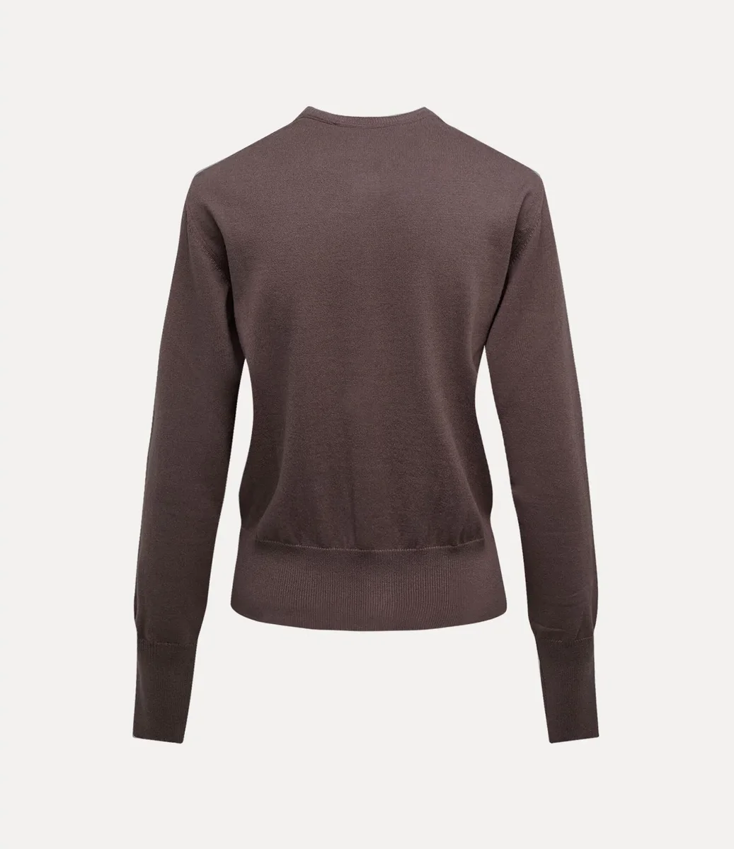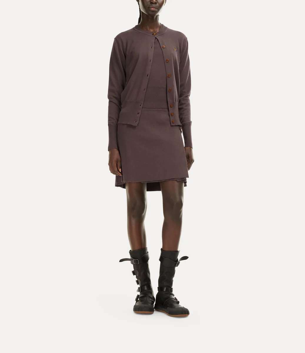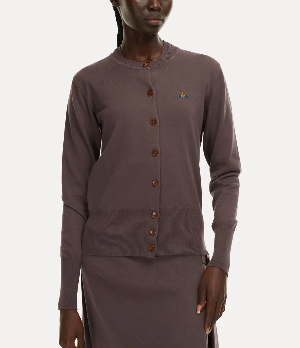 Unsere Bea Strickjacke ist aus Baumwoll-Kaschmir gefertigt und verfügt über einen Rundhalsausschnitt und eine taillierte Silhouette. Das Kleidungsstück ist mit unseren charakteristischen bernsteinfarbenen Knöpfen verziert und wird durch eine gestickte Kugel auf der Brust ergänzt, die für Viviennes Vision steht, Tradition in die Zukunft zu tragen.