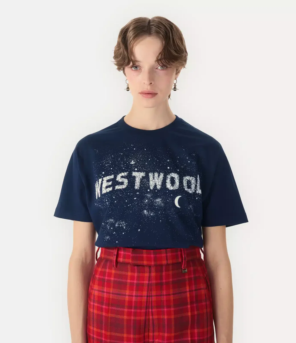 Das Nana Classic T-Shirt wurde exklusiv für die Vivienne Westwood X Nana Kollektion entworfen und ist aus leichter Baumwolle gefertigt. Es hat eine lockere Passform mit Rundhalsausschnitt und kurzen Ärmeln. Das Teil ist mit farblich abgestimmten Nähten versehen und mit dem himmlischen „Westwood Galaxy”-Motiv bedruckt.