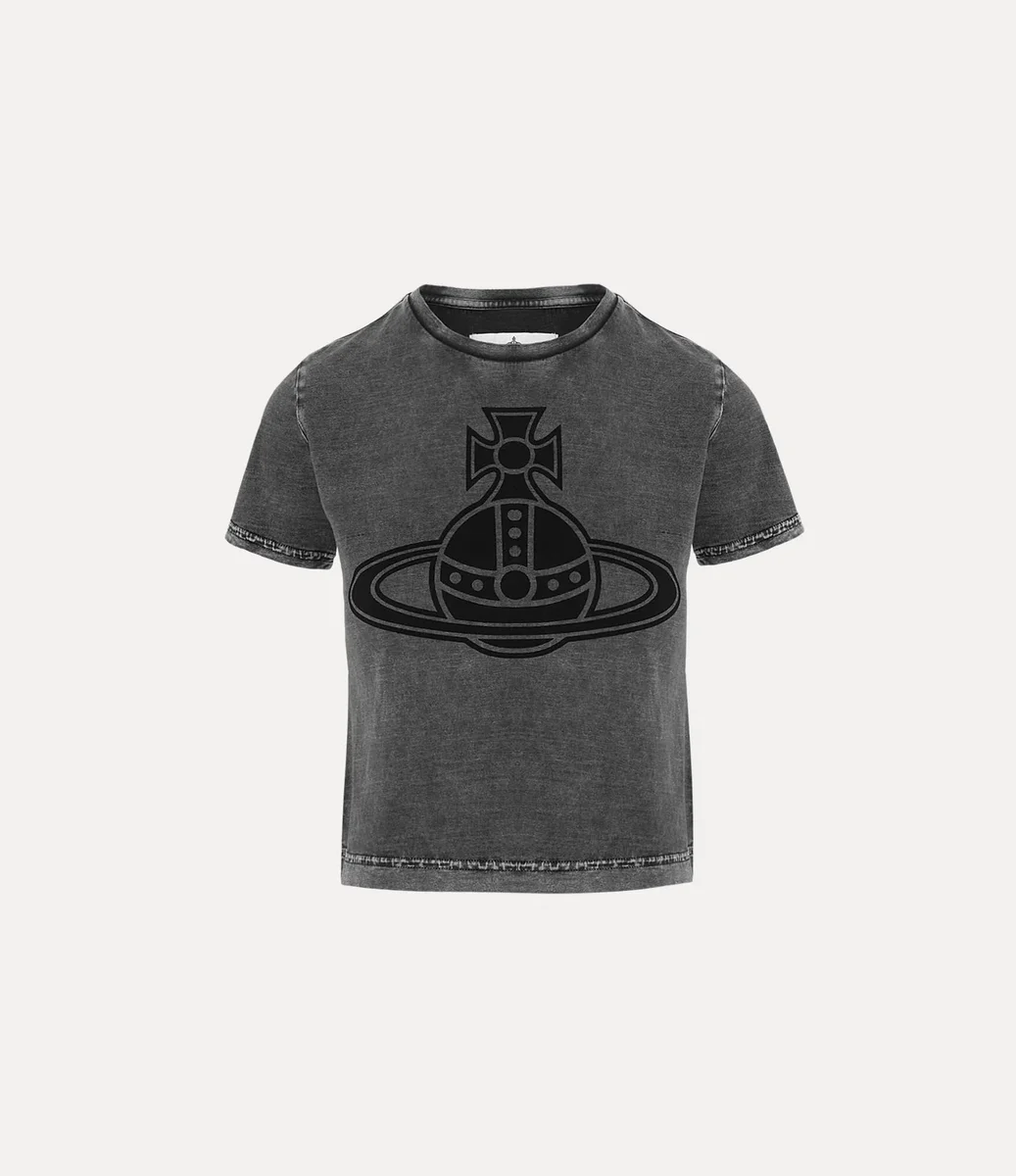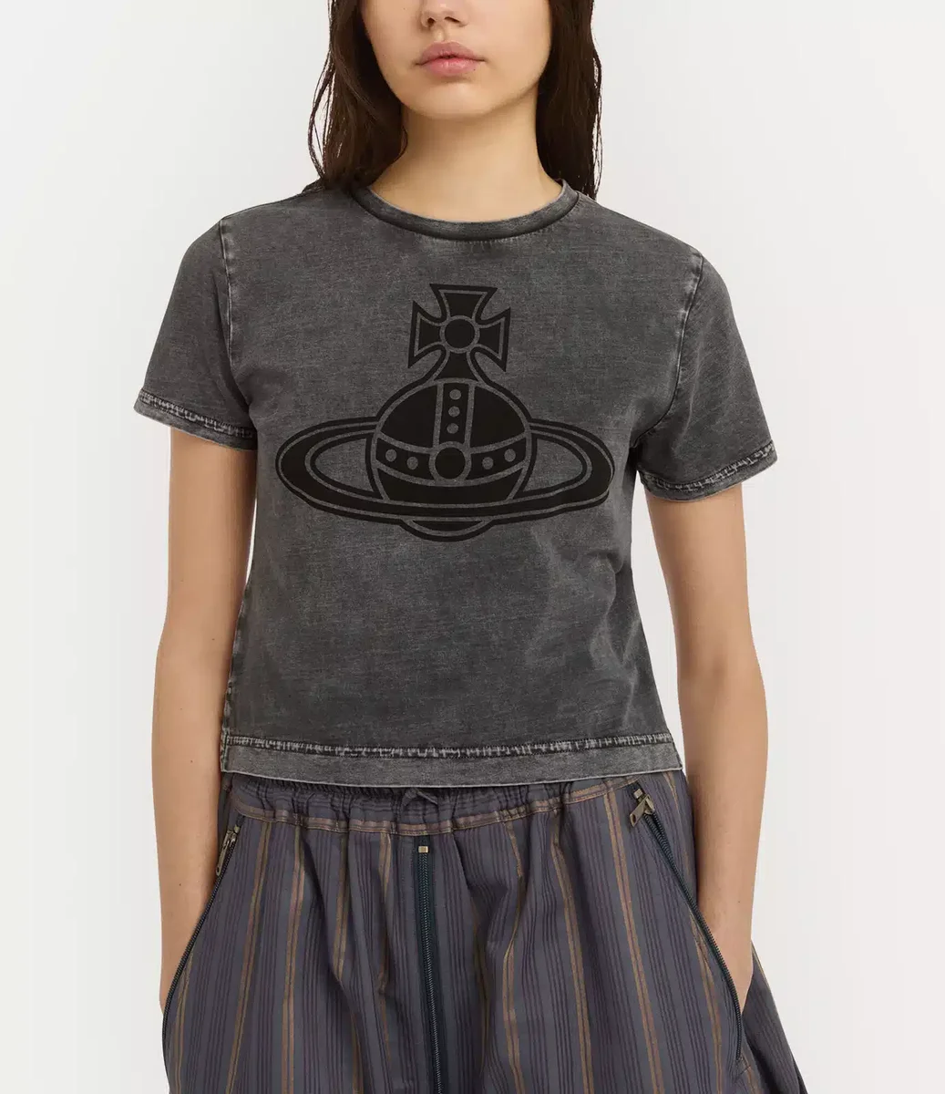 Unser Paris Orb Mini Peru T-Shirt ist aus leichtem Baumwolljersey gefertigt und hat eine verkürzte Silhouette mit klassischem Rundhalsausschnitt, der in einen asymmetrischen Stufen-Saum übergeht. Das mit dem Orb-Motiv des Hauses verzierte Kleidungsstück spiegelt Viviennes Vision wider, Tradition in die Zukunft zu tragen.