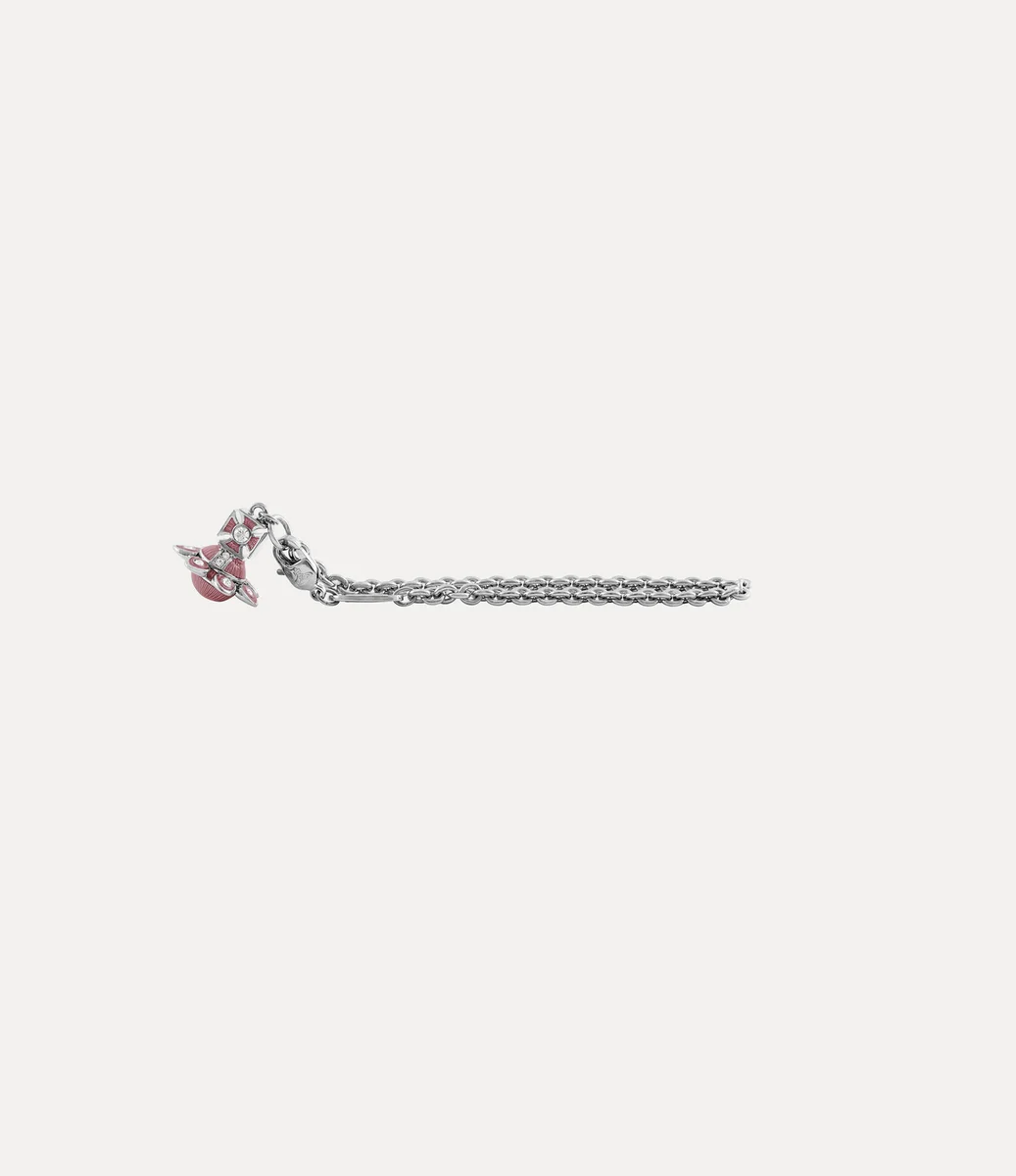 Unser silberfarbenes Capucine-Armband interpretiert das traditionelle Kugelmotiv des Hauses mit zarten, floral inspirierten Details entlang des Saturnrings neu. Das Design wird durch eine subtile geriffelte Textur in der Mitte der Kugel und am Kreuzkopf abgerundet, die mit hellrosa, durchscheinendem Emaille handbemalt ist.