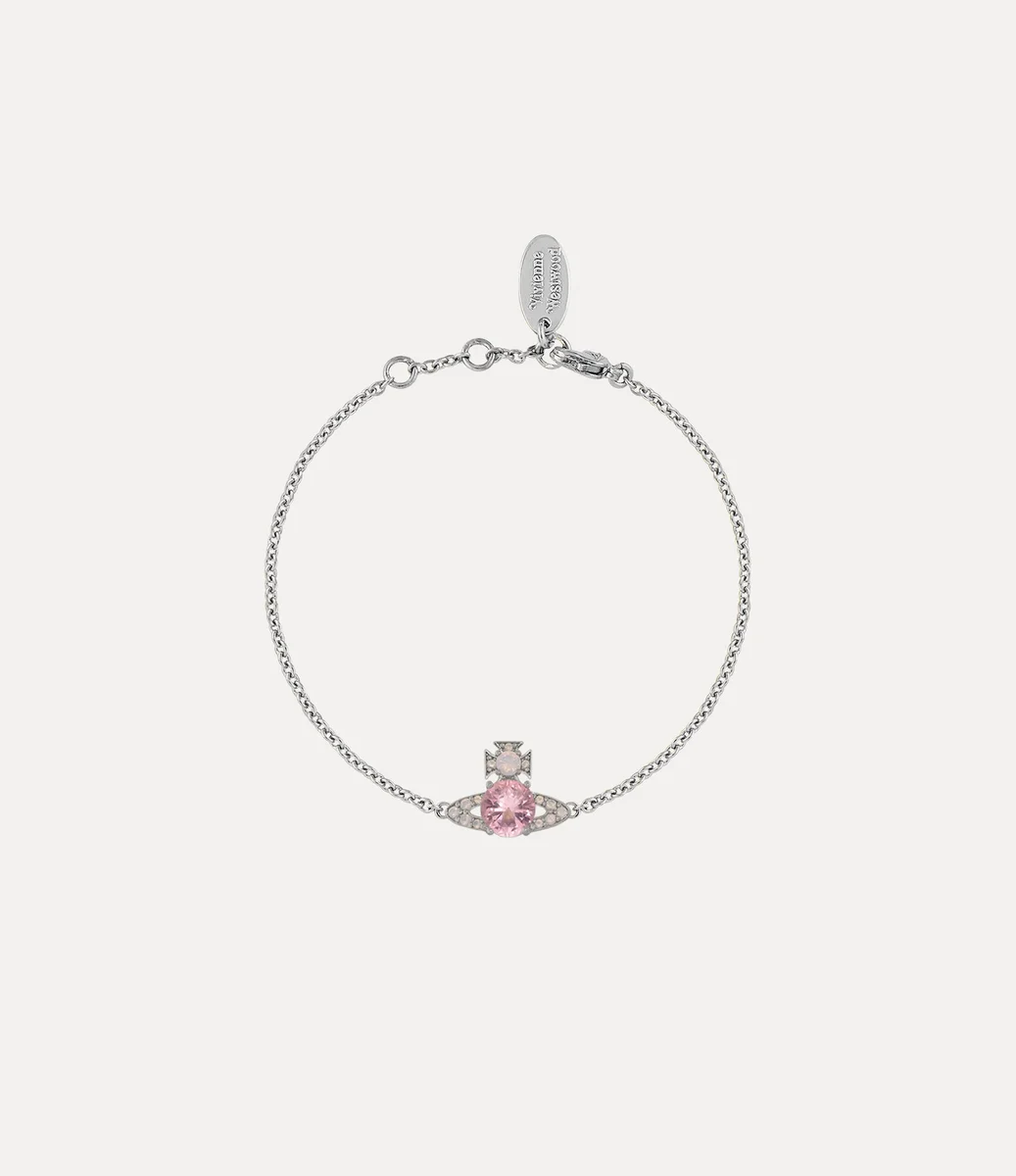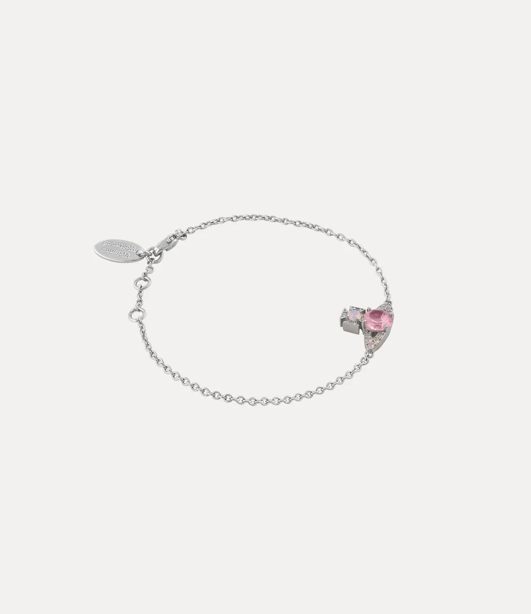 Unser Ismene-Armband wurde in dieser Saison mit glitzernden rosa Kristalldetails und einer polierten, silberfarbenen Beschichtung aktualisiert. In der Mitte befindet sich eine Kugel, die Tradition symbolisiert, umgeben von den himmlischen Ringen des Saturn, die die Zukunft symbolisieren.