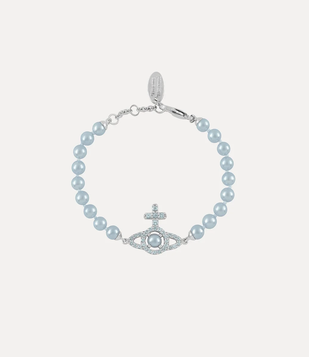 Perlen sind nach wie vor ein wesentliches Element der Ikonografie des Hauses und vermitteln ein Gefühl von vergangenem Luxus. Das Olympia Pearl Armband ist mit blauen Glasperlen besetzt und in der Mitte mit unserer charakteristischen silberfarbenen Kugel verziert, die aufwendig mit Pavé-Kristallen verziert ist.