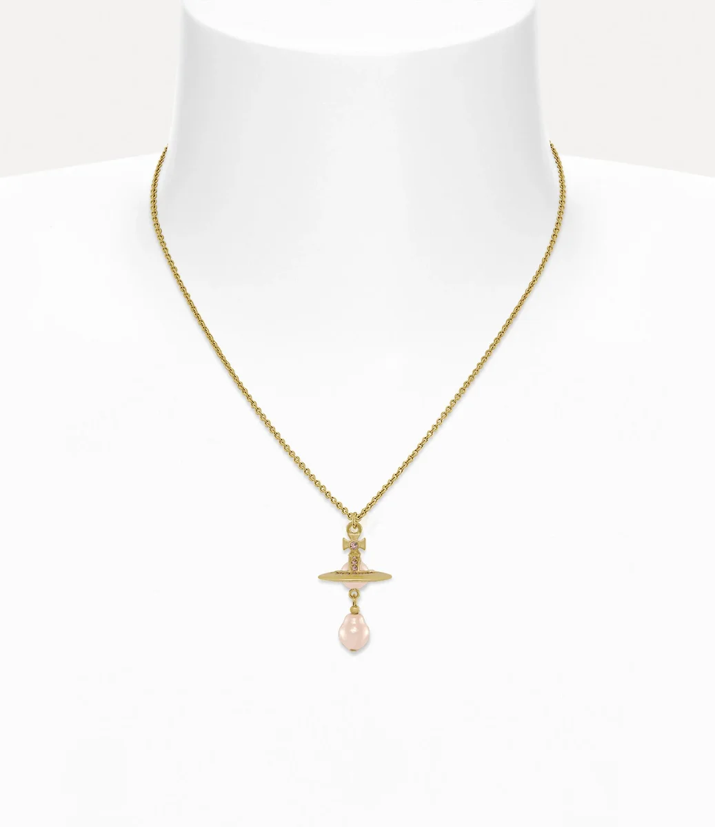 Die Aleksa-Anhänger-Halskette lässt das klassische dreidimensionale Kugelmotiv wieder aufleben und verkörpert damit die Idee, die Vergangenheit in die Zukunft zu übertragen. Der Anhänger ist mit glitzernden Kristallen verziert und mündet in einem barocken Perlendetail aus Glas, das mit einer polierten, goldfarbenen Beschichtung versehen ist.