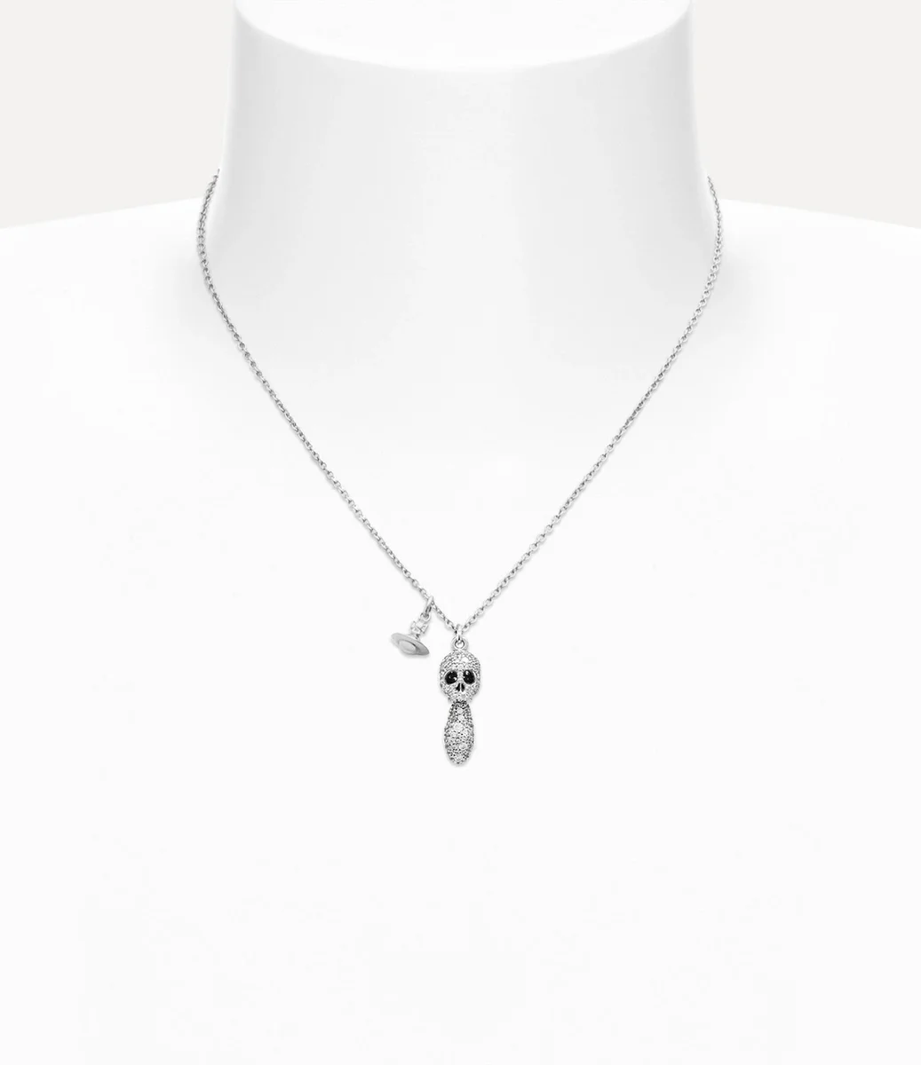 Die Vivienne Westwood Circe Orb Pendants Halskette verfügt über ein zentrales Totenkopfmotiv, das mit Reihen schimmernder Edelsteine verziert ist.