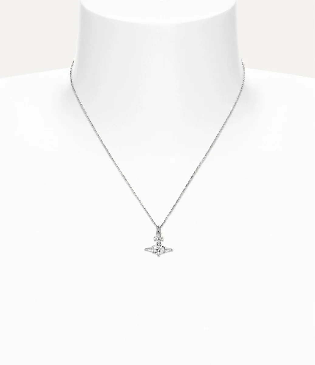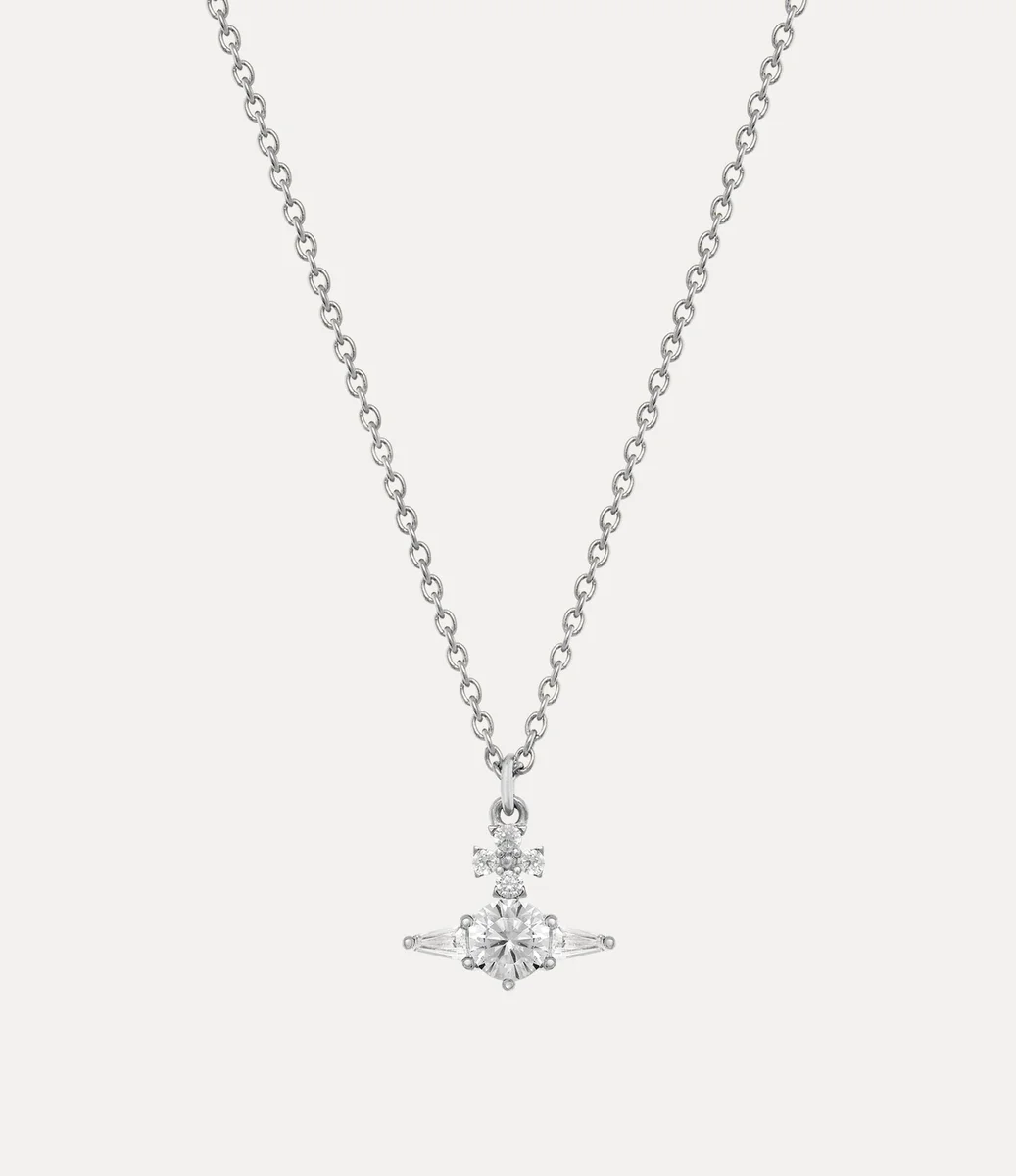 Unsere Ofelia-Anhänger-Halskette verfügt über die klassische Kugel in der Mitte, inspiriert vom charakteristischen Kugelmotiv unseres Hauses. Das mit glitzernden runden und konischen Zirkonia-Baguette-Kristallen besetzte Design spiegelt die Philosophie des Hauses wider, die Vergangenheit in die Zukunft zu übertragen.