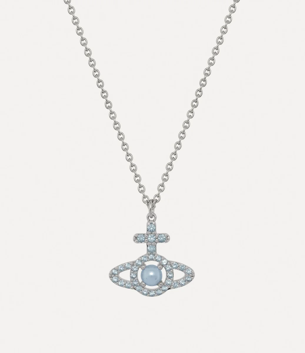 Die Olympia Pearl Pendant Halskette ist ein charakteristisches Stück des Hauses, dessen Mittelpunkt unser unverwechselbares Orb-Motiv bildet, das von unserem ikonischen Orb-Motiv inspiriert ist. Akzentuiert durch funkelnde hellblaue Kristalle und Glasperlen spiegelt das Design die Philosophie wider, die Vergangenheit mit der Zukunft zu verbinden.