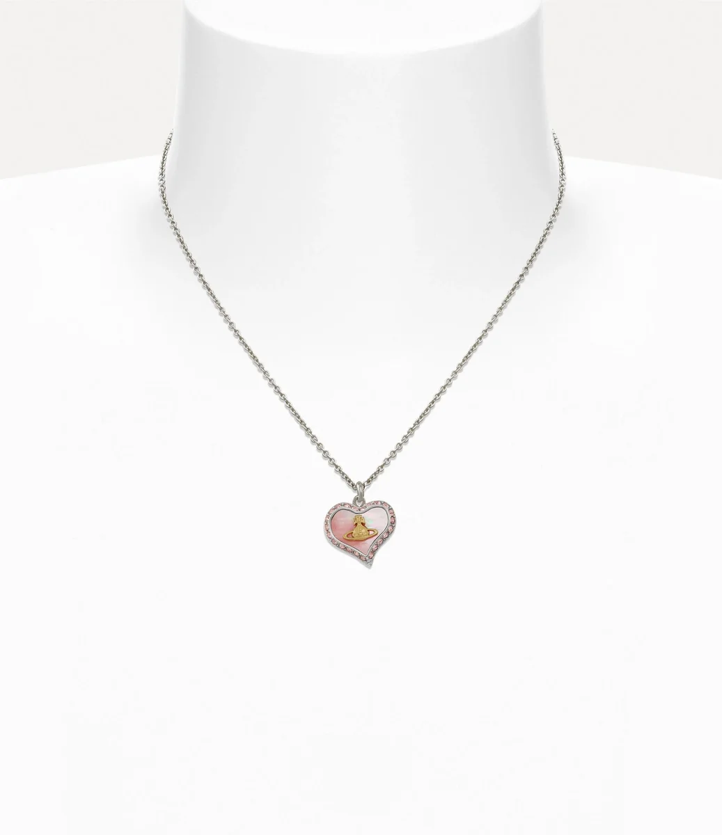 Unsere Petra-Anhänger-Halskette greift das charakteristische asymmetrische Herzmotiv des Hauses wieder auf, das für Viviennes Zuneigung zur Menschheit und zum Planeten steht. Das Motiv ist mit rosafarbenen Kristallen umrandet und wird durch ein goldfarbenes Kugelmotiv in der Mitte des Designs abgerundet.