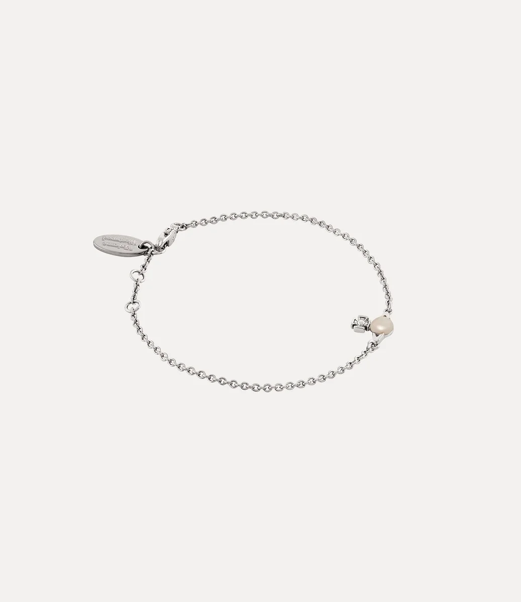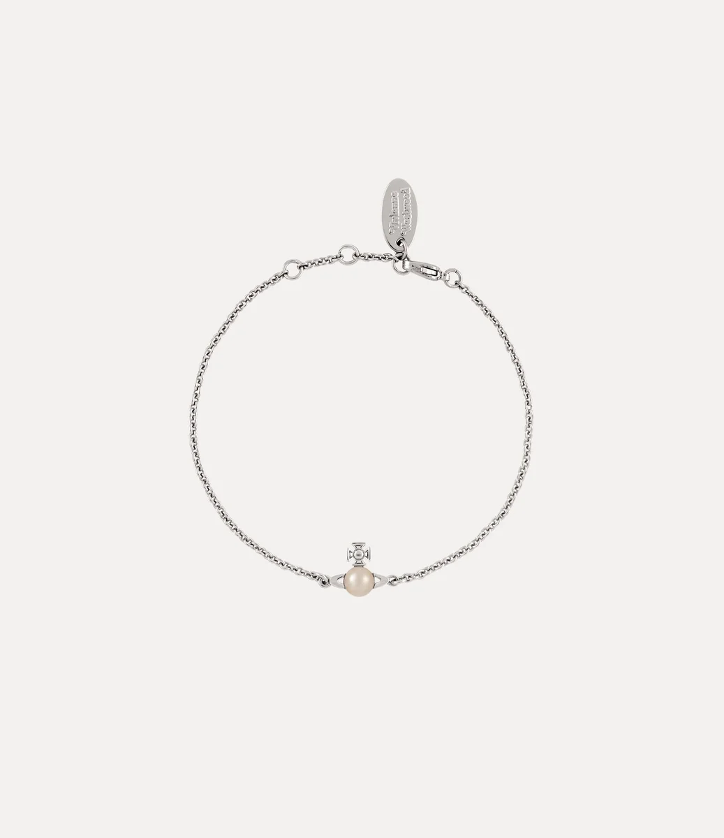 Perlen sind ein wesentlicher Bestandteil der Ikonografie des Hauses und vermitteln ein Gefühl von Grandezza und Luxus. Das Balbina-Armband verfügt über eine schimmernde Glasperle in der Mitte des Kugelmotivs, die Viviennes Vision, Tradition in die Zukunft zu tragen, zum Ausdruck bringt.
