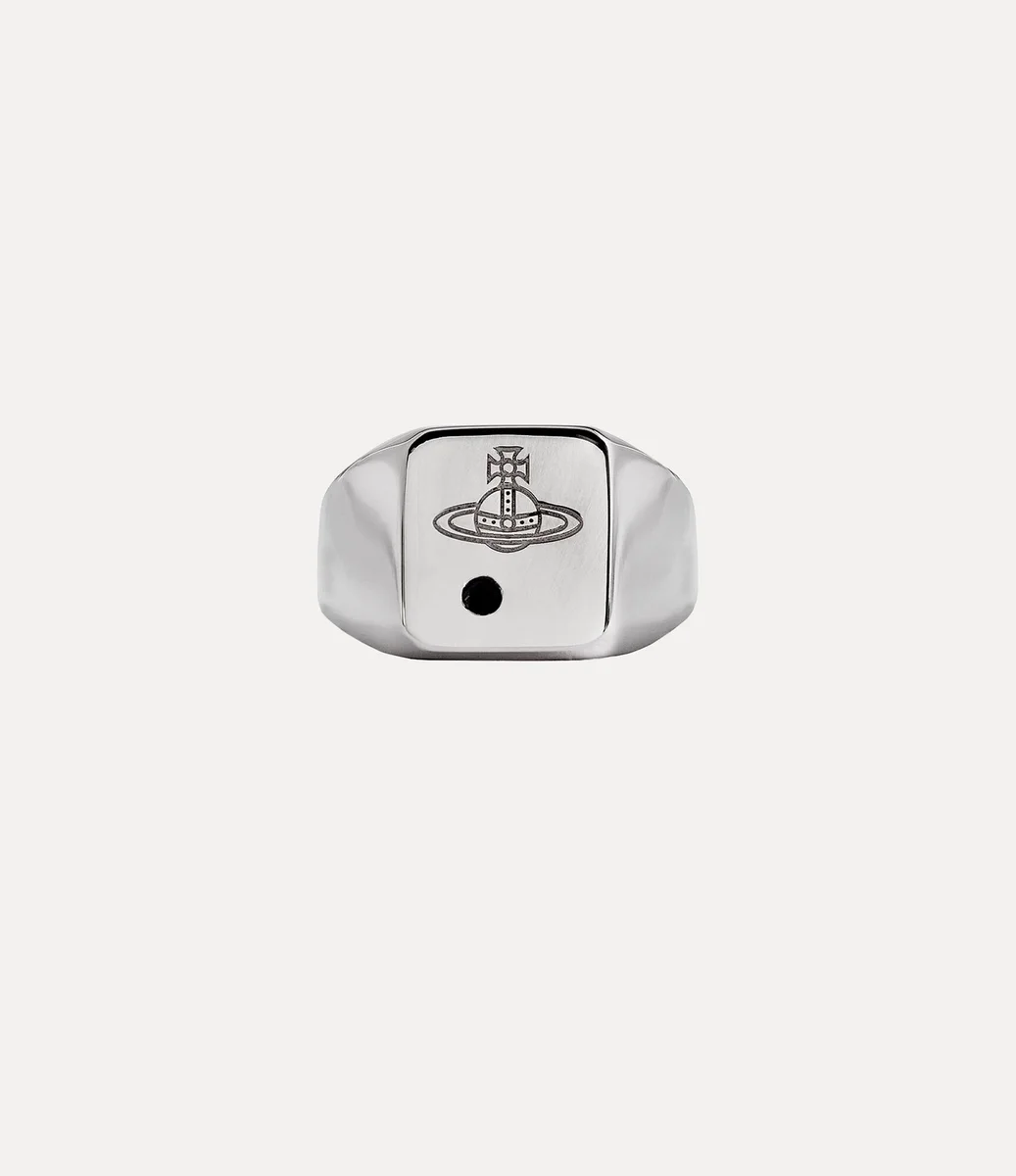Unser Carlo-Ring präsentiert sich in einer zeitlosen Siegelring-Silhouette aus platinfarbenem Silber. Die quadratische Vorderseite wird durch ein schwarzes Kristalldetail akzentuiert, ergänzt durch ein graviertes Kugelmotiv, das für Tradition steht, und umgeben von den himmlischen Ringen des Saturn, die die Zukunft symbolisieren.