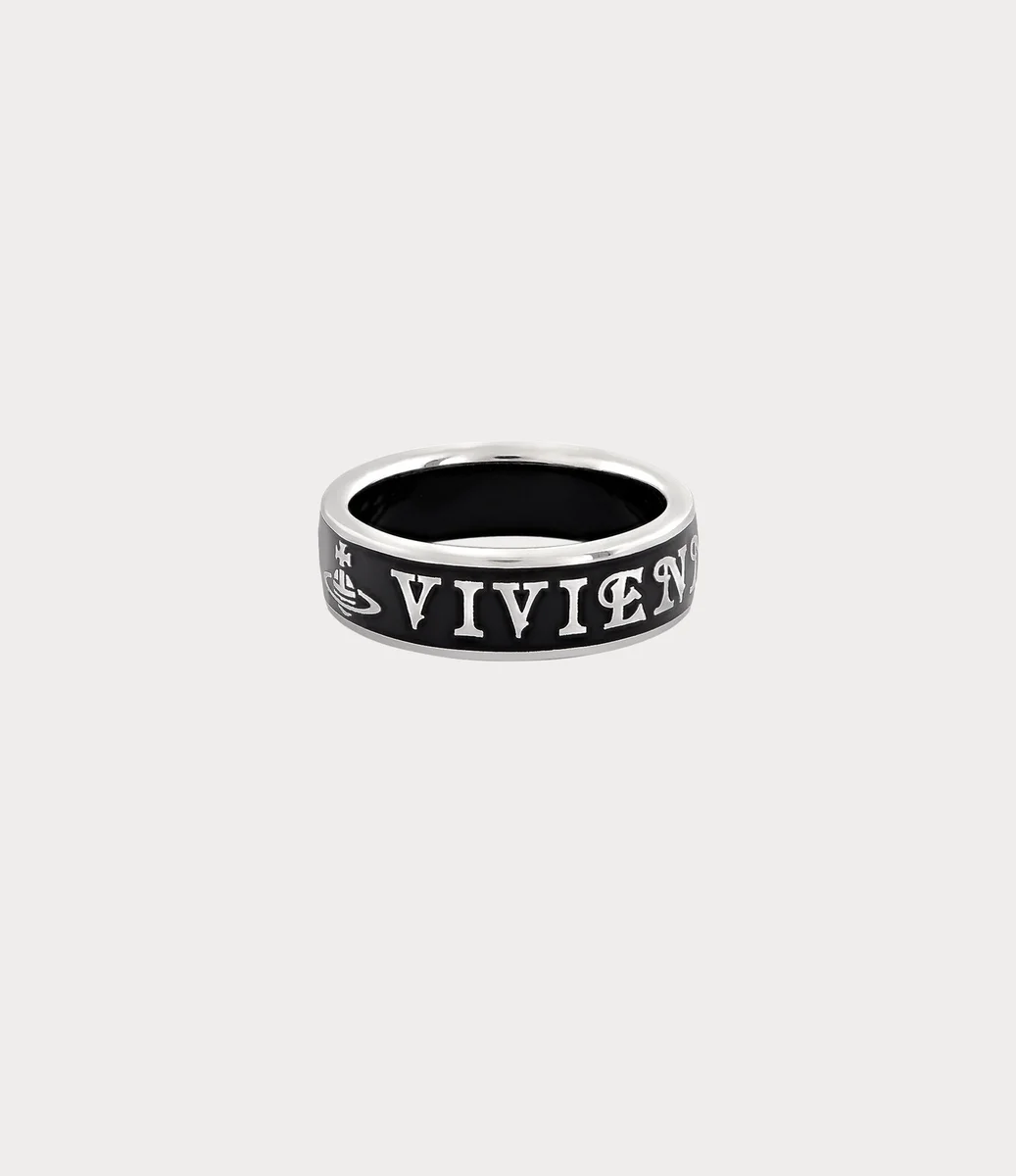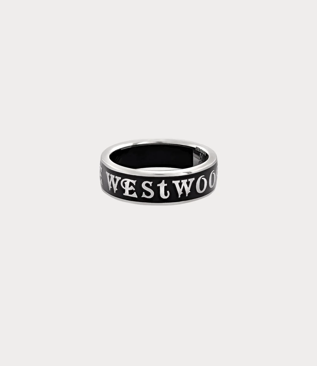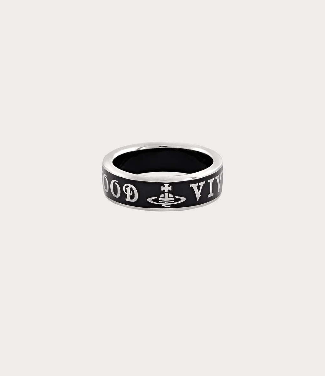 Unser charakteristischer Conduit Street Ring aus platinbeschichtetem recyceltem Silber ist vom ikonischen Conduit Street Armreif inspiriert und mit einer aufwendigen Gravur des Schriftzugs „Vivienne Westwood” entlang des Bandes versehen. Das Stück ist mit kontrastierenden Emaille-Akzenten verziert und mit einem zentralen Kugelmotiv versehen.