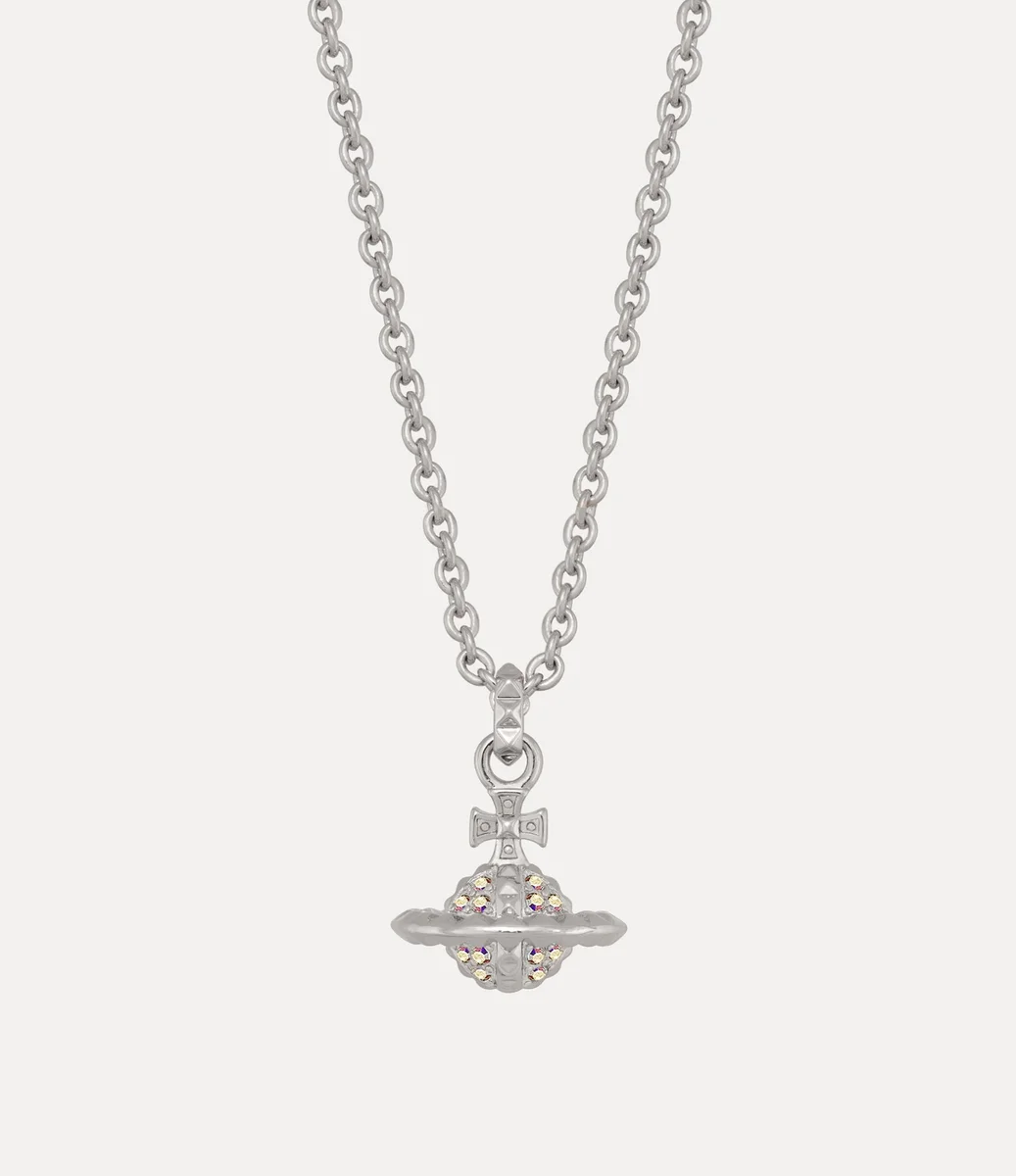 Das Design unserer kleinen Mayfair Orb-Anhänger-Halskette ist von unserem charakteristischen Orb-Emblem inspiriert – ein Synonym für Viviennes Vision, Tradition in die Zukunft zu tragen. Das Schmuckstück verfügt über einen dreidimensionalen Orb-Anhänger in der Mitte des Designs, der mit schillernden Edelsteinen verziert und durch Nieten-Details hervorgehoben ist, die an den charakteristischen Punk-Stil des Hauses erinnern.