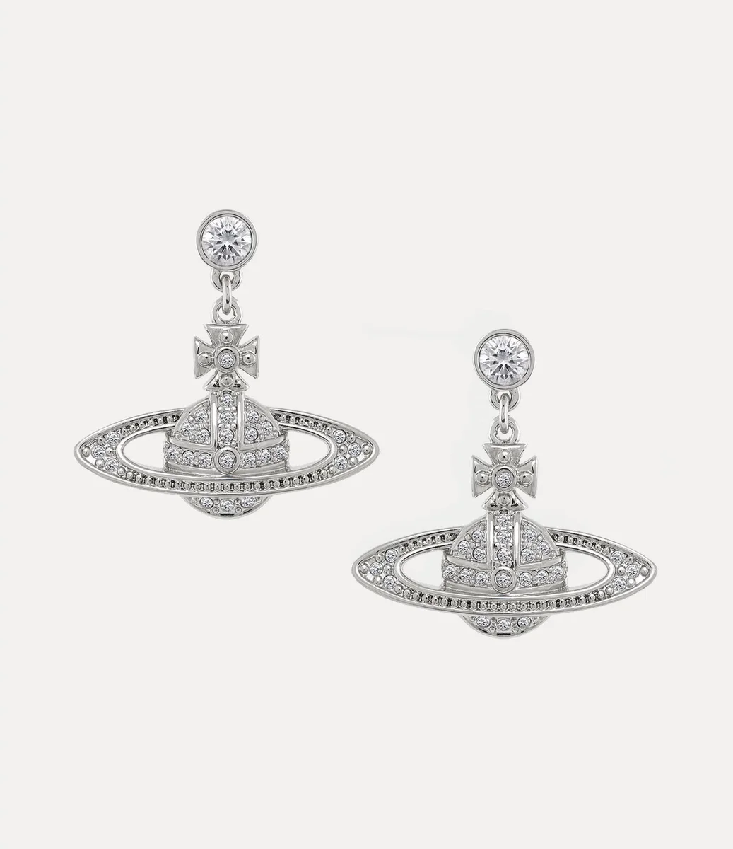 Die Kugelform ist seit langem ein Synonym für das Haus und erinnert an Viviennes Vision, Tradition in die Zukunft zu tragen. Die Mini Bas Relief Drop Ohrringe haben eine Kugelform, sind mit polierter Silberbeschichtung versehen und mit farblich abgestimmten Kristalldetails veredelt.