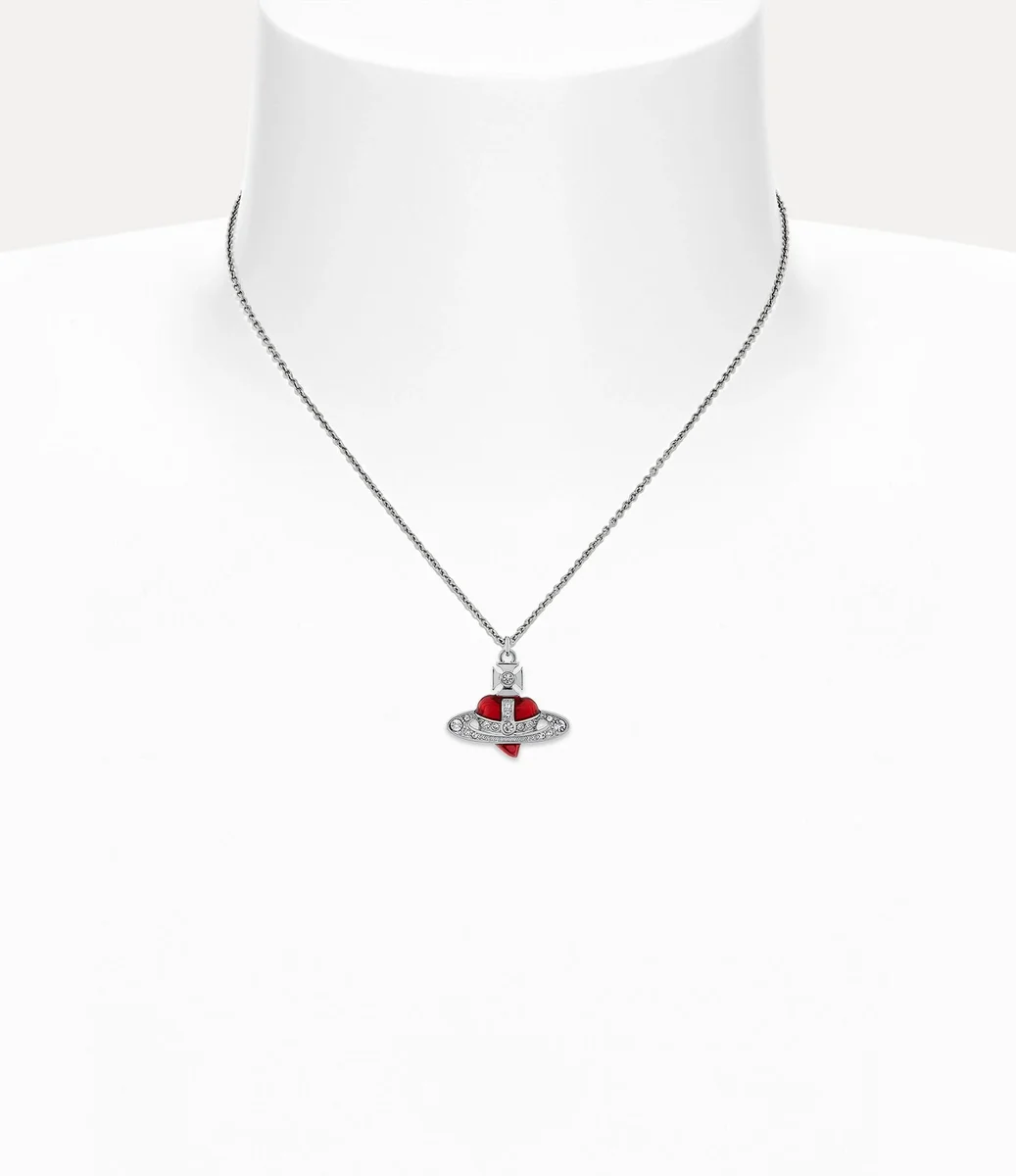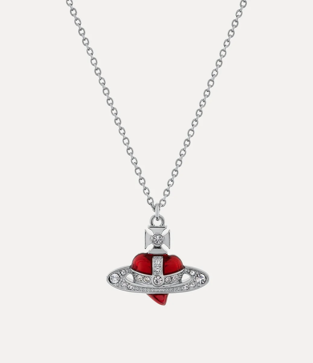 Die Herzform ist zu einem Markenzeichen des Hauses geworden und steht für Viviennes Liebe zur Menschheit und zum Planeten. Unsere New Diamante Heart Pendant Halskette greift unsere ikonische asymmetrische Herzsilhouette wieder auf, die mit weißen Kristallen umrandet und in der Mitte des Designs mit rotem Emaille verziert ist.