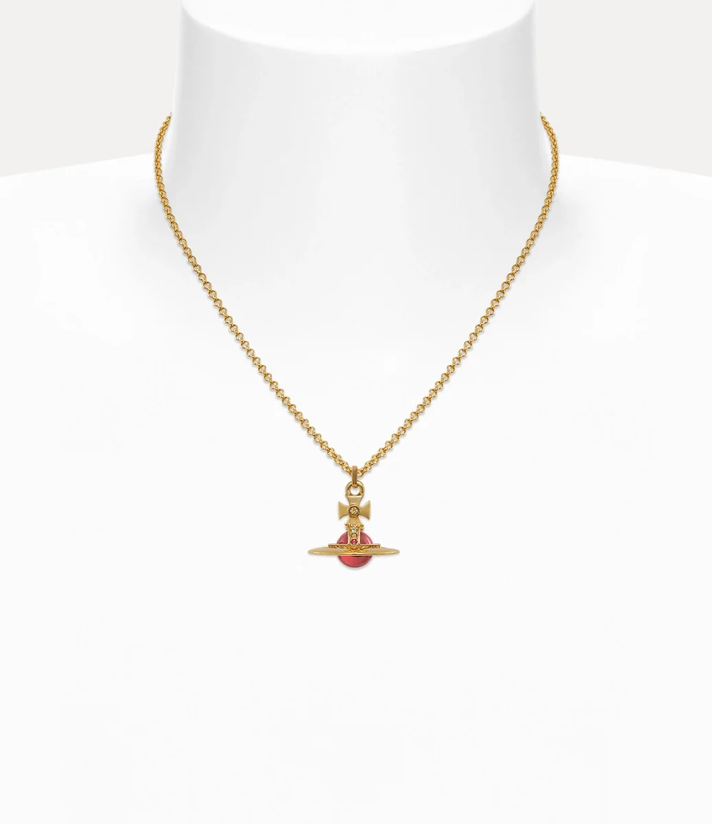 Unsere neue Halskette mit kleinem Orb-Anhänger ist ein charakteristisches Modell des Hauses und verfügt über einen rosa kugelförmigen Glasstein, der durch einen sicheren Karabinerverschluss ergänzt wird. Der dreidimensionale Orb-Anhänger ist mit glitzernden Kristalldetails in leuchtenden Farben verziert und erinnert an die Philosophie, die Vergangenheit in die Zukunft zu übertragen.