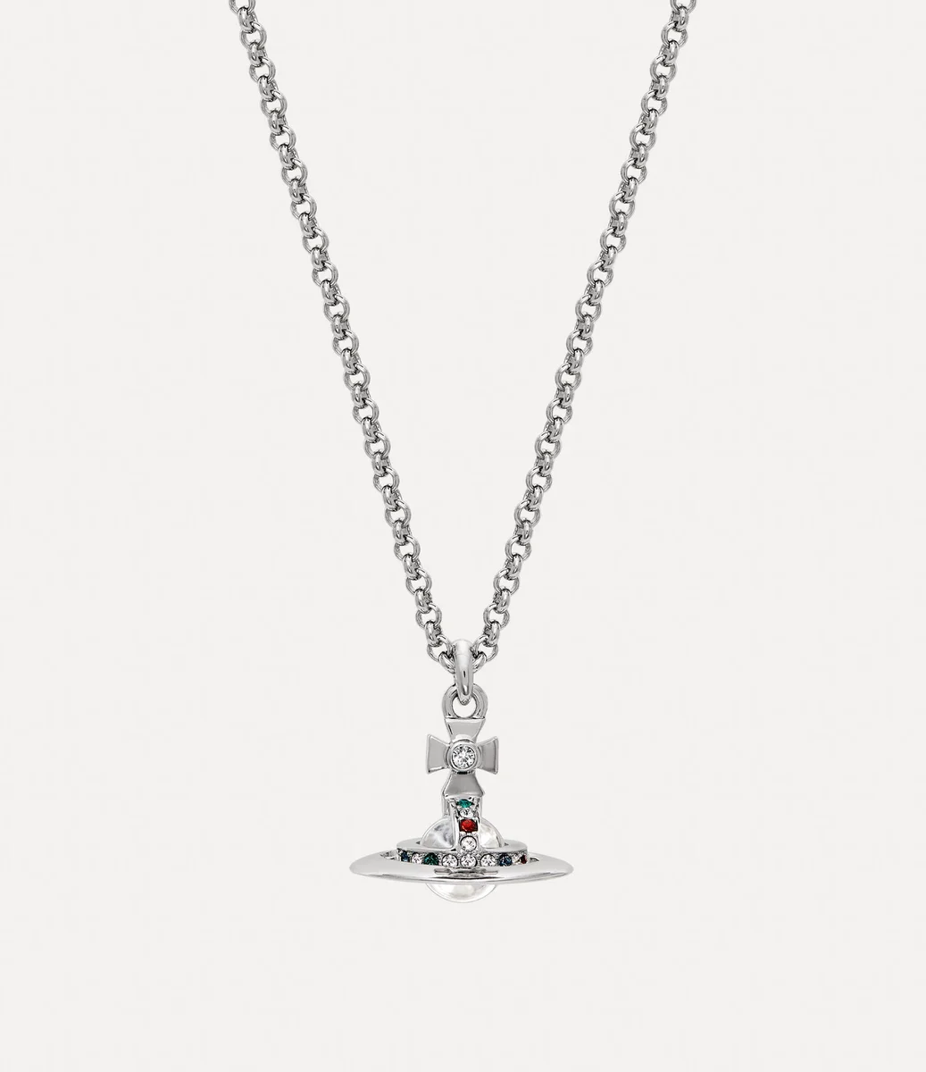 Unsere neue Petite Orb Pendant Halskette ist zu einem Markenzeichen des Hauses geworden. In dieser Saison erhält das Schmuckstück ein Update mit einer silberfarbenen Beschichtung und einer farbenfrohen dreidimensionalen Kugel, die von einem mit Kristallen besetzten Saturnring umgeben ist – ein Symbol für die Philosophie, die Vergangenheit in die Zukunft zu tragen.