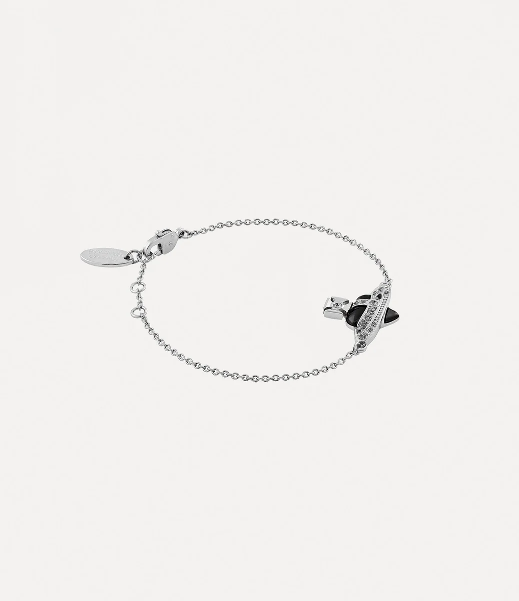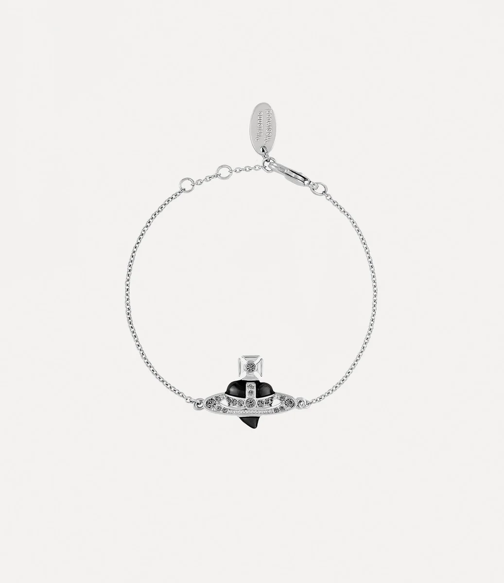 Unser neues Diamante Heart Armband verfügt über ein asymmetrisches Herzmotiv, das an Viviennes Zuneigung zur Menschheit und zum Planeten erinnert. Das Design ist in Silberton gegossen und verfügt über ein handbemaltes schwarzes Emaille-Herz, das mit funkelnden Kristallverzierungen aufwendig detailliert ist.