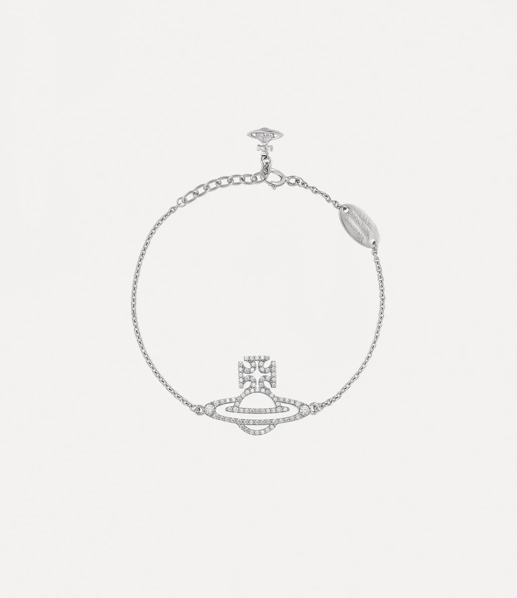 Unser Trudy Armband greift unser klassisches Kugelmotiv wieder auf und erinnert an Viviennes Vision, Tradition in die Zukunft zu tragen. Das Design ist mit Pavé-Kristallen verziert und verfügt über einen baumelnden Kugelanhänger am Verschluss, der elegant mit einer feinen Gliederkette abgerundet wird.p>