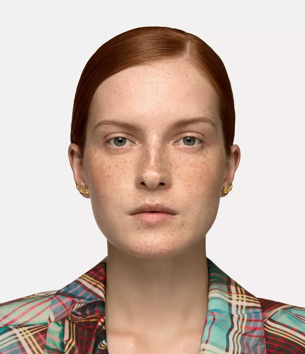 Unsere Candy Ohrringe sind goldfarben plattiert und vollständig aus Metall gefertigt. Die Silhouette ist vom Orb-Motiv unseres Hauses inspiriert und mit drei miteinander verbundenen Orb-Details versehen – ein Symbol für Viviennes Vision, Tradition in die Zukunft zu tragen.