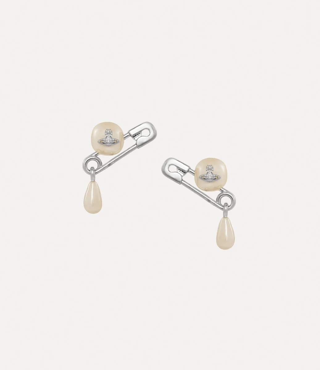 Unsere silberfarbenen Claude Small Ohrstecker verfügen über eine runde Perle mit einem zentralen Kugeldetail, das durch ein klassisches Sicherheitsnadel-Motiv ergänzt wird, das die Punk-Ästhetik des Hauses widerspiegelt. Das Design bietet einen zarten Barockperlentropfen, komplett mit unseren maßgeschneiderten Schmetterlingsverschlüssen.