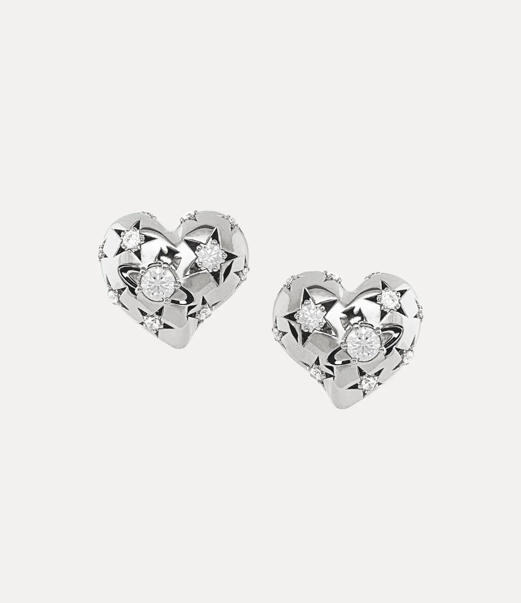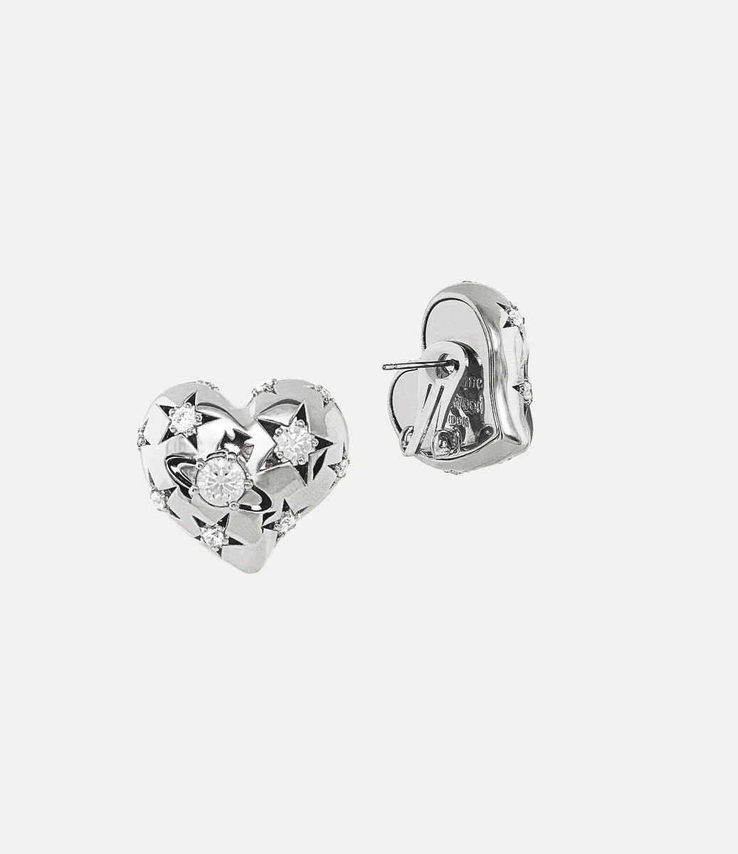 Unsere silberfarbenen Lee Clip-Ohrringe lassen die charakteristische Ikonografie des Hauses wieder aufleben und sind mit einem klassischen asymmetrischen Herzmotiv verziert. Das Design strahlt himmlischen Charme aus und zeigt Sternmotive neben der zentralen Kugel-Silhouette, inspiriert von unserem kugelförmigen Motiv, das an Viviennes Vision erinnert, Tradition in die Zukunft zu tragen.