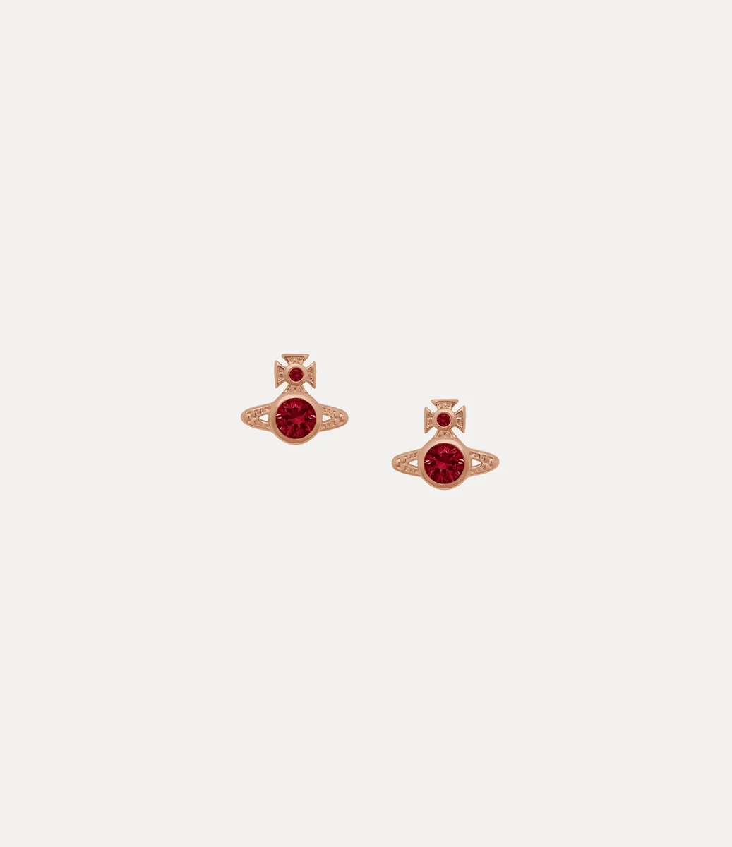 Unsere klassischen London Orb Ohrringe wurden neu interpretiert und sind nun mit einer Roségoldbeschichtung versehen. Sie sind mit funkelnden roten Kristallen in der Mitte der Kugel und am Kreuz verziert. Das Design zeichnet sich durch aufwendige Maserungsdetails entlang des Saturnrings aus, die durch zarte Cut-out-Akzente abgerundet werden.